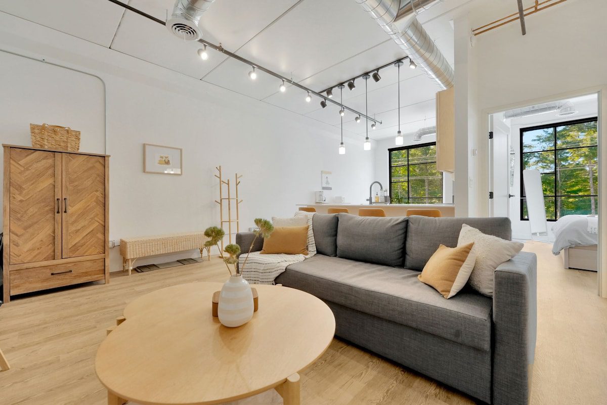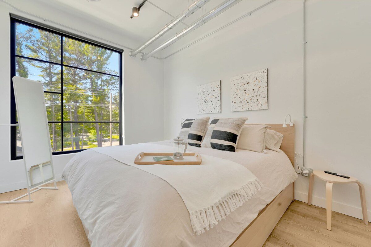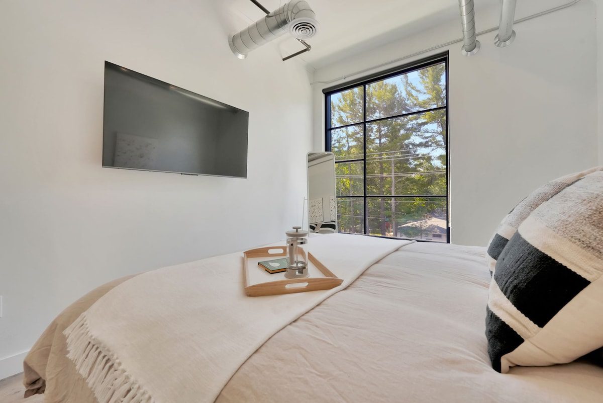 Discover modern living at its finest with an industrial twist in this sleek 1 bedroom, 1 bathroom Eastside condo. Enjoy the shared rooftop, complete with relaxing hot tubs for all guests to enjoy. This condo offers all the essentials for comfortable living and is just a short drive from downtown Traverse City and the renowned wineries on Old Mission Peninsula. Embrace the perfect blend of style and convenience in your next vacation spot in Northern Michigan.