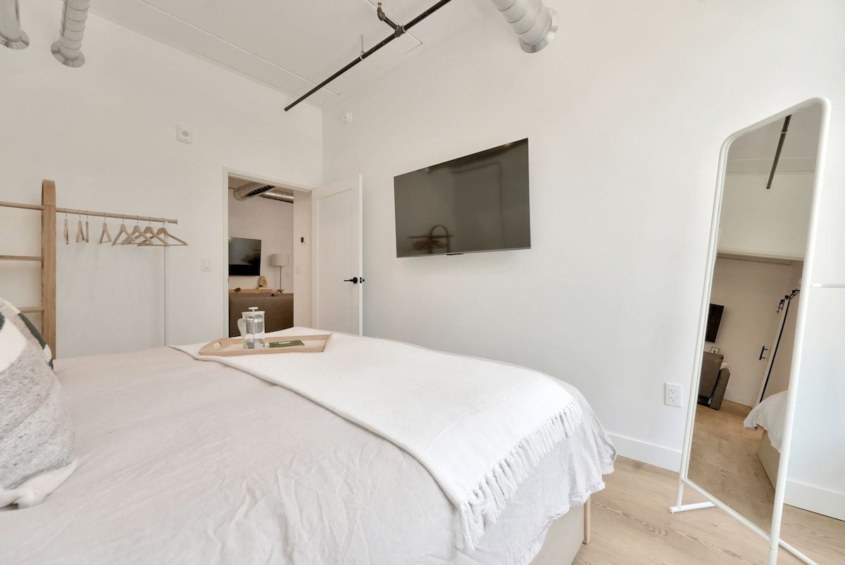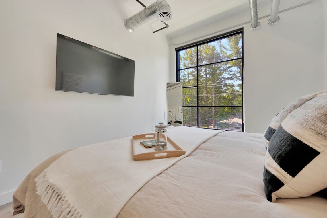 Nestled close to downtown Traverse City, our condo offers the ideal blend of convenience and comfort. Whether you’re planning a romantic escape or a fun-filled adventure, this brand new condo is sure to delight. This unit has a Smart TV located in the living room, and bedroom where you would need to use your own personal login to any of the streaming services provided on the TV’s. There is no cable provided. The spacious bedroom features a luxurious king-sized bed, while the living room boasts a cozy queen-sized pullout couch, accommodating up to four guests comfortably.