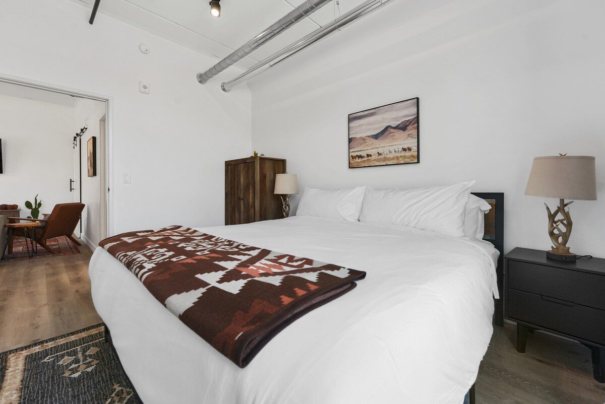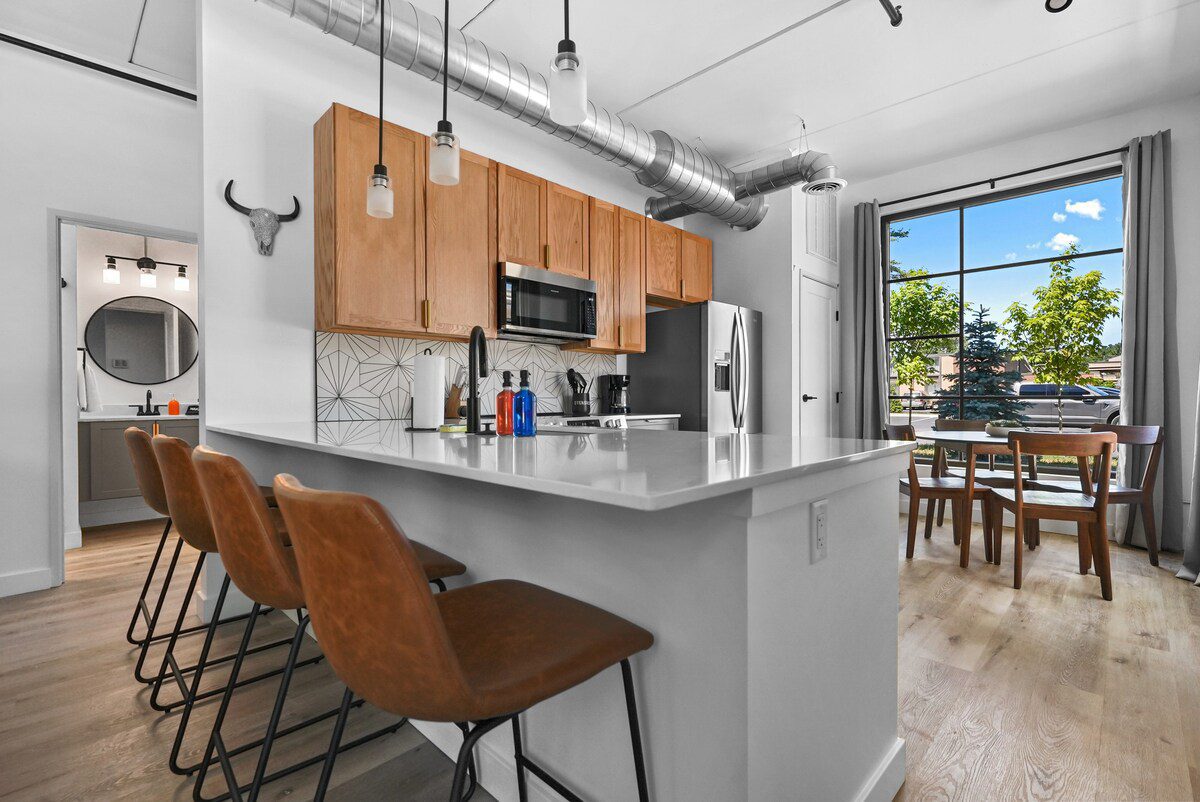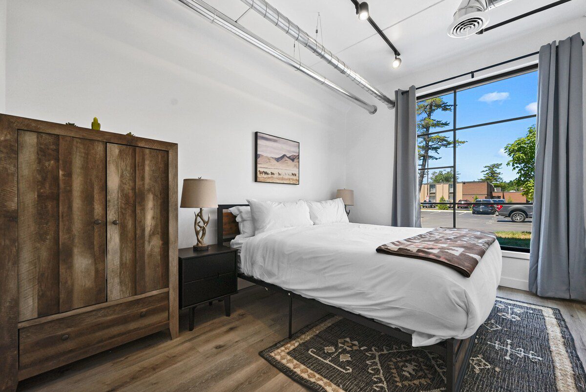 Discover modern living at its finest with an industrial twist in this sleek 1 bedroom, 1 bathroom Eastside condo. Enjoy the shared rooftop, complete with relaxing hot tubs for all guests to enjoy. This condo offers all the essentials for comfortable living and is just a short drive from downtown Traverse City and the renowned wineries on Old Mission Peninsula. Embrace the perfect blend of style and convenience in your next vacation spot in Northern Michigan.