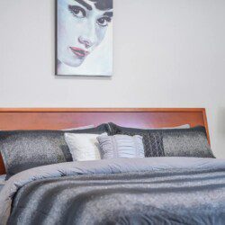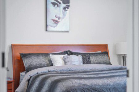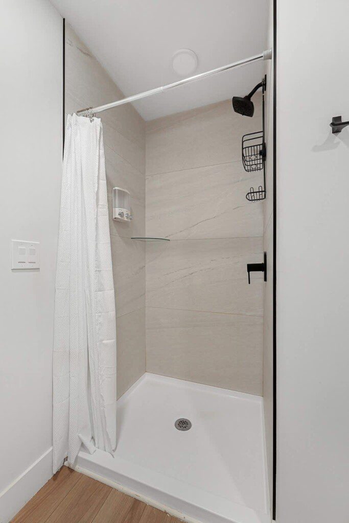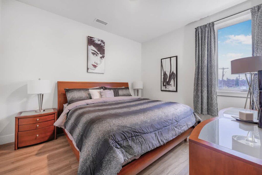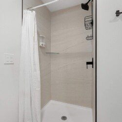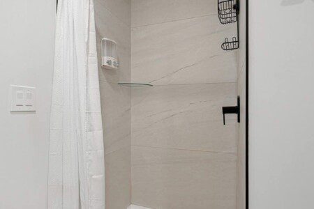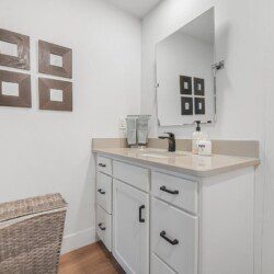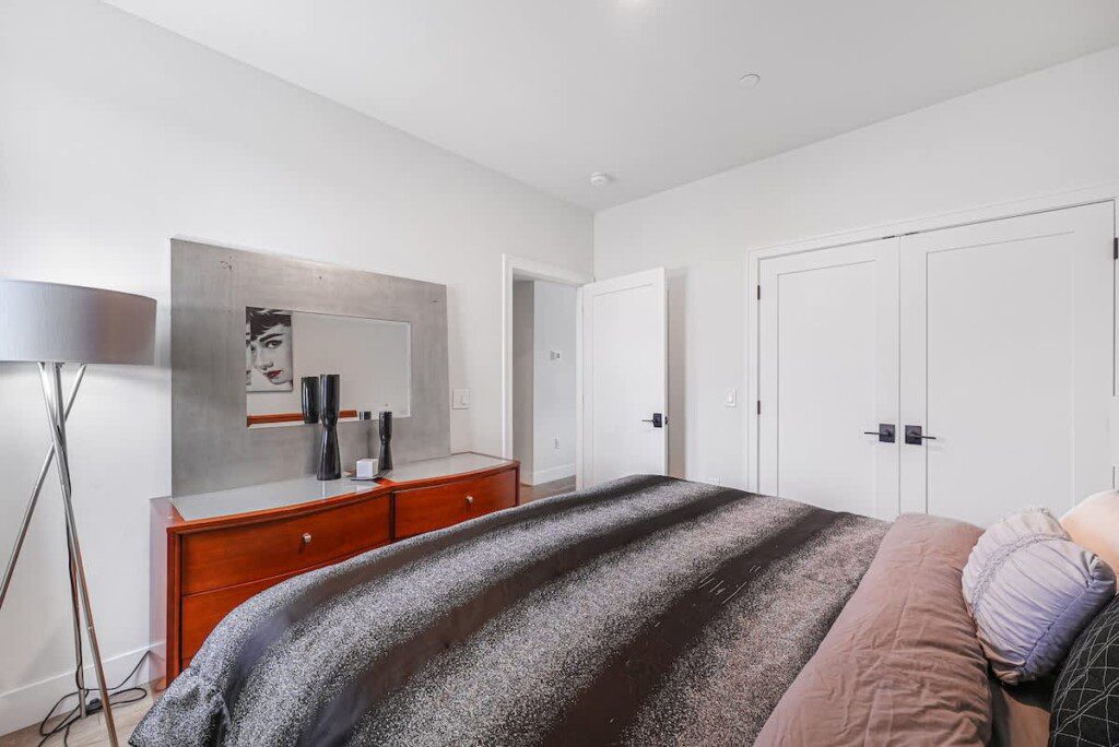 Next, walk into the primary bedroom which features a cozy king sized bed, closet, and dresser! (All linens included) You will also find a full bathroom stocked with towels, hair dryer, shampoo, conditioner, body wash, and 3 rolls of toilet paper.