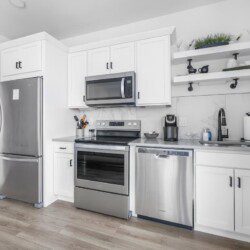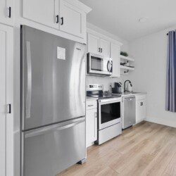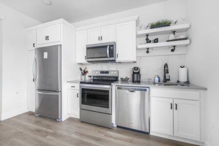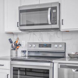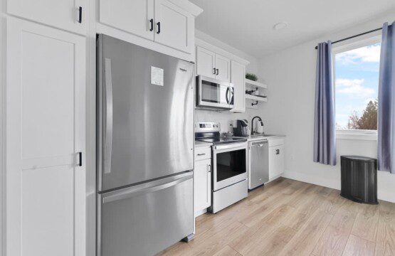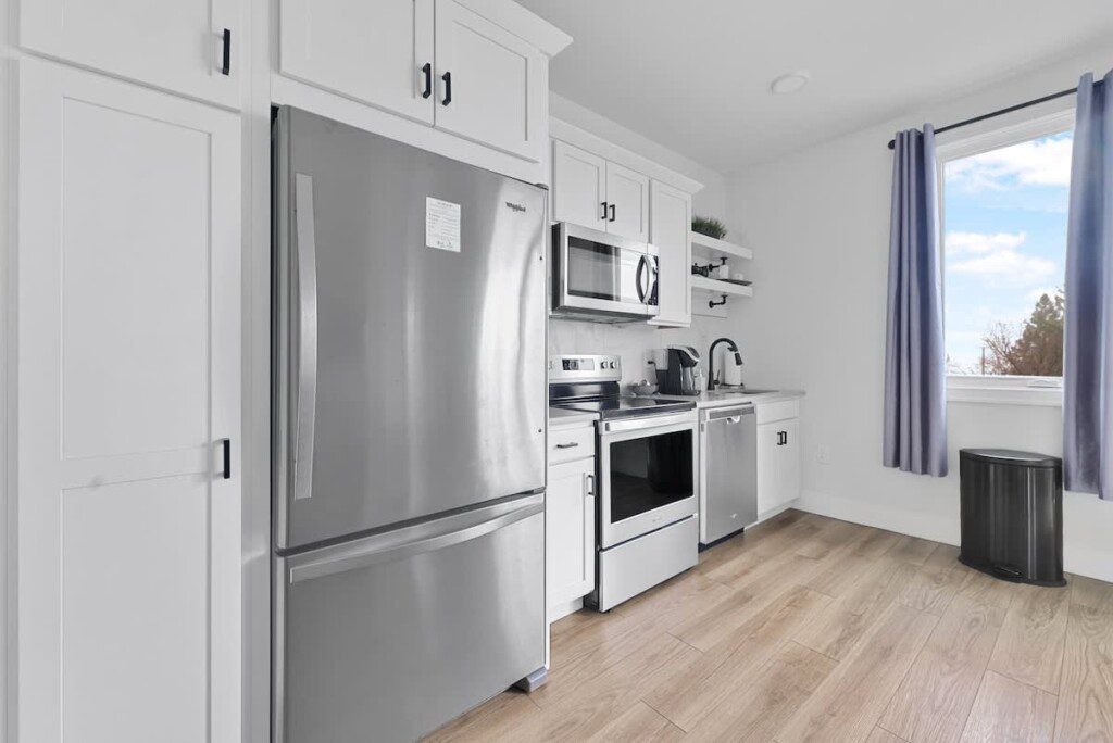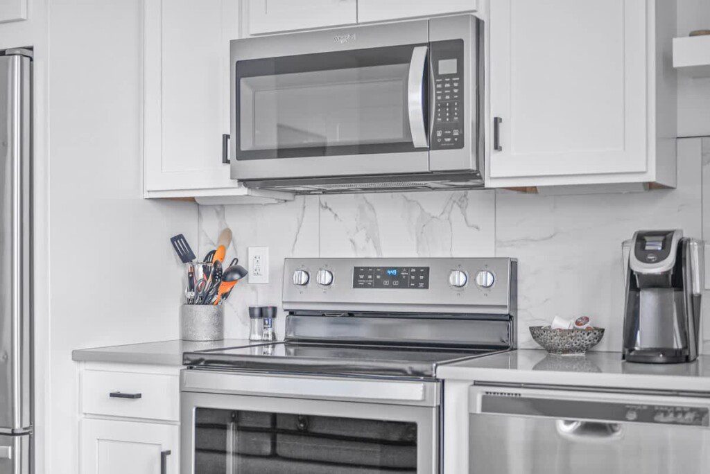 Located right next to the living room you will find the well stocked kitchen! If you are planning on staying in for a night and wanting to cook a homemade meal this kitchen has all your needed appliances, basic dish ware, cookware, and cooking utensils. This home hosts a Keurig and 2 k-cups will be provided to get your vacation started on the right foot! (Also included in the kitchen is 4 dish pods, dish soap, hand soap, a sponge, 3 trash bags, and 2 paper towel rolls)