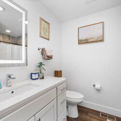 The two bedrooms are comfortable, with cozy bedding and a closet. All linens are provided. You will find one bathroom on the main floor and one on the second. Both bathrooms are equipped with a shower along with shampoo, conditioner, body wash, towels, and 3 rolls of toilet paper.
