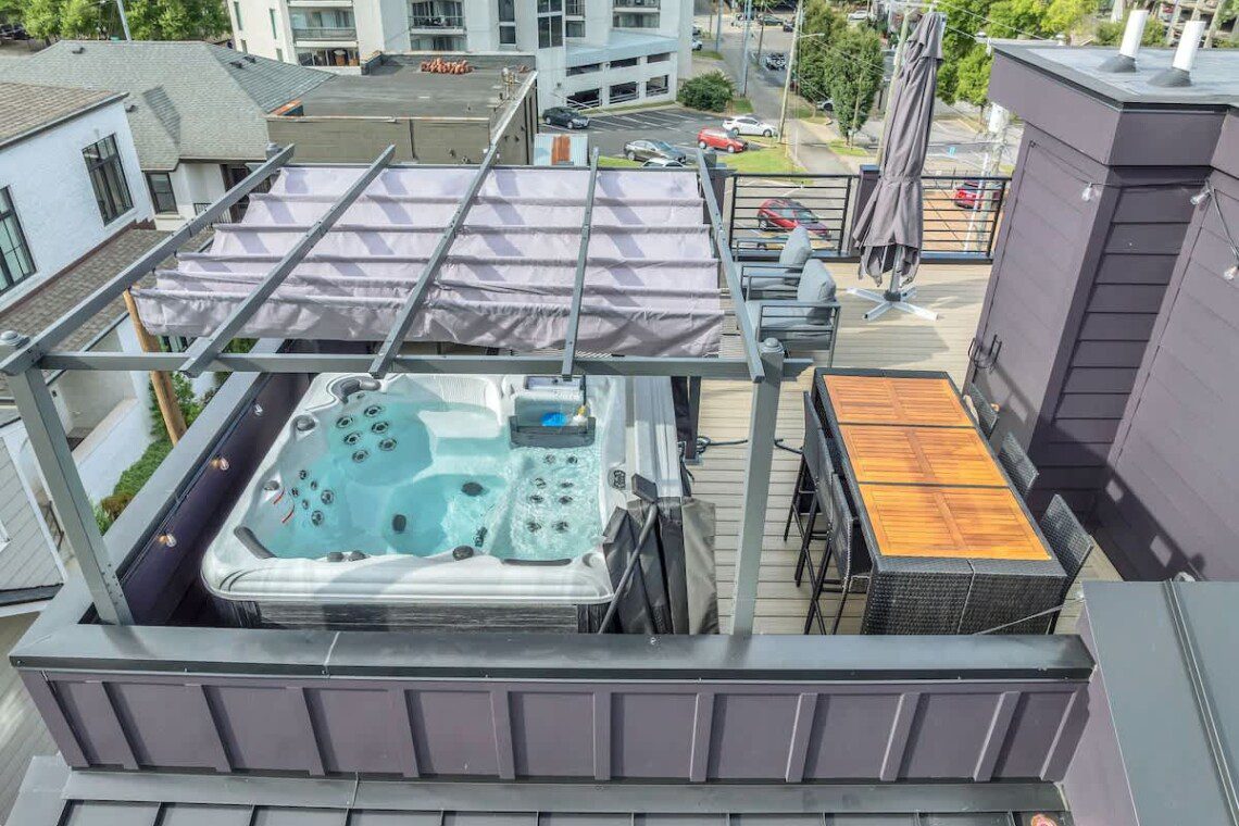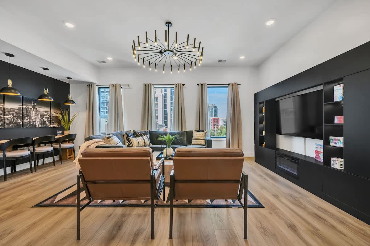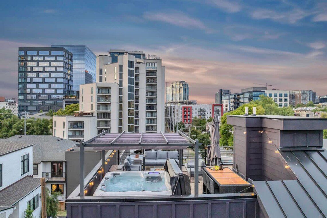 Welcome to your Music Row luxury mansion! Enjoy this newly built home with a spacious rooftop, stunning views, a large hot tub, and 5 en suite rooms —perfect for bachelor or bachelorette parties, group gatherings, family vacations, remote work retreats, and unforgettable celebrations. Located steps from Music Row, Midtown, Vanderbilt, Broadway and the Gulch, you’ll have unmatched access to all that downtown Nashville has to offer.