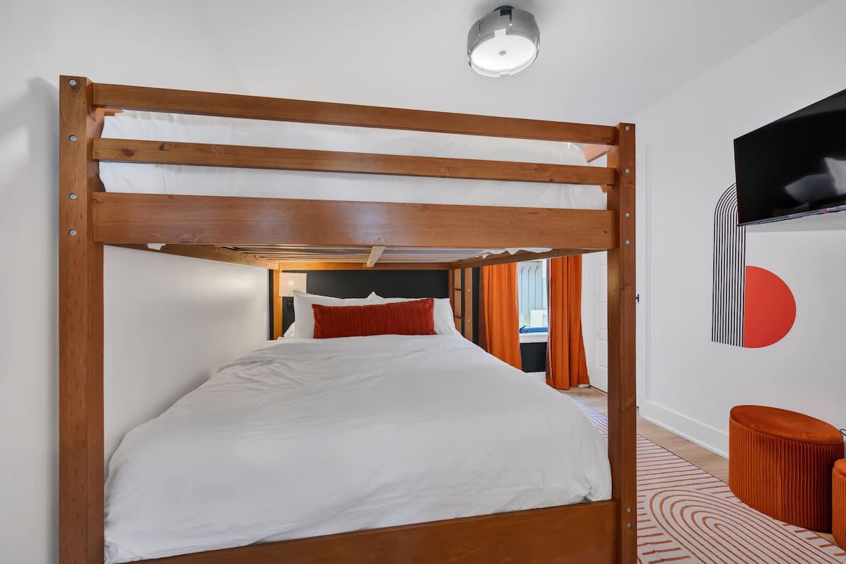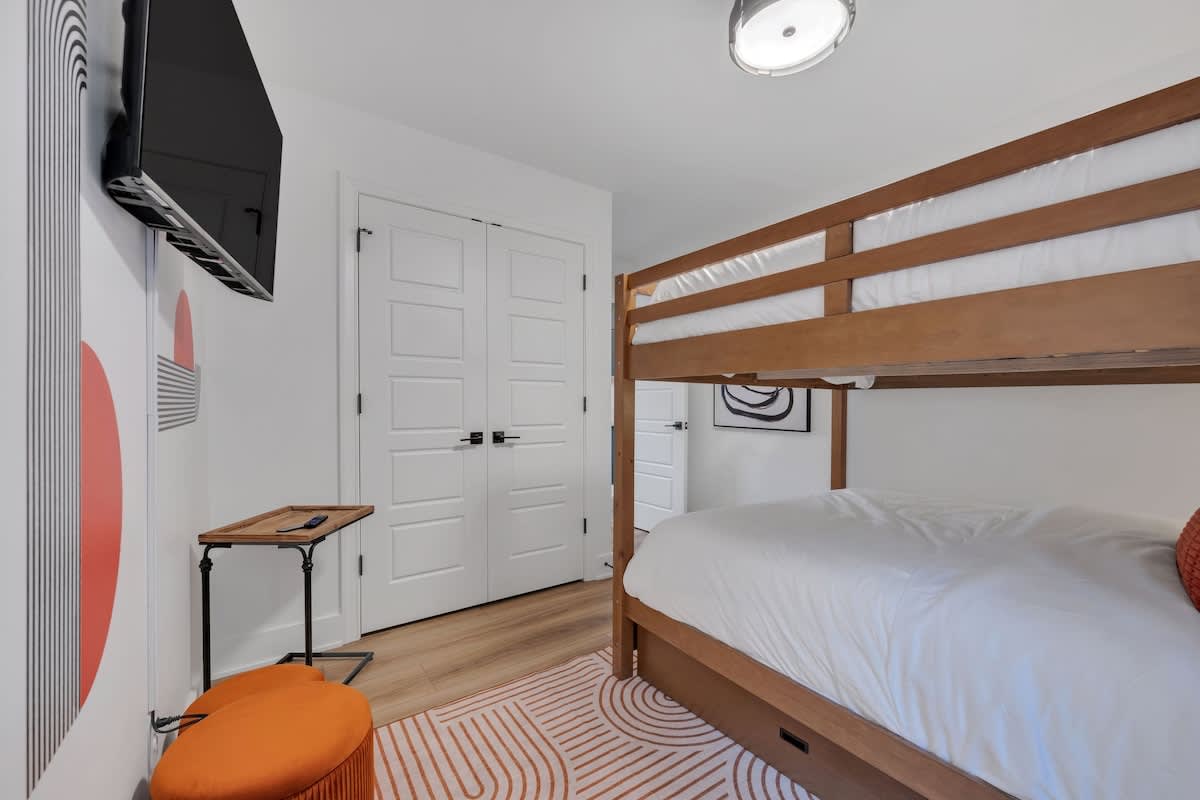 ◆ Bedroom 4 – Queen bed + Full bath + Closet + TV