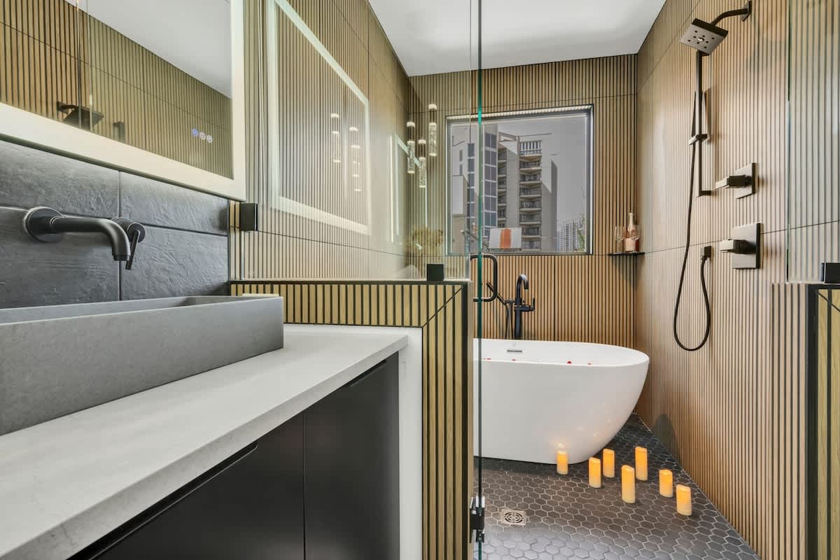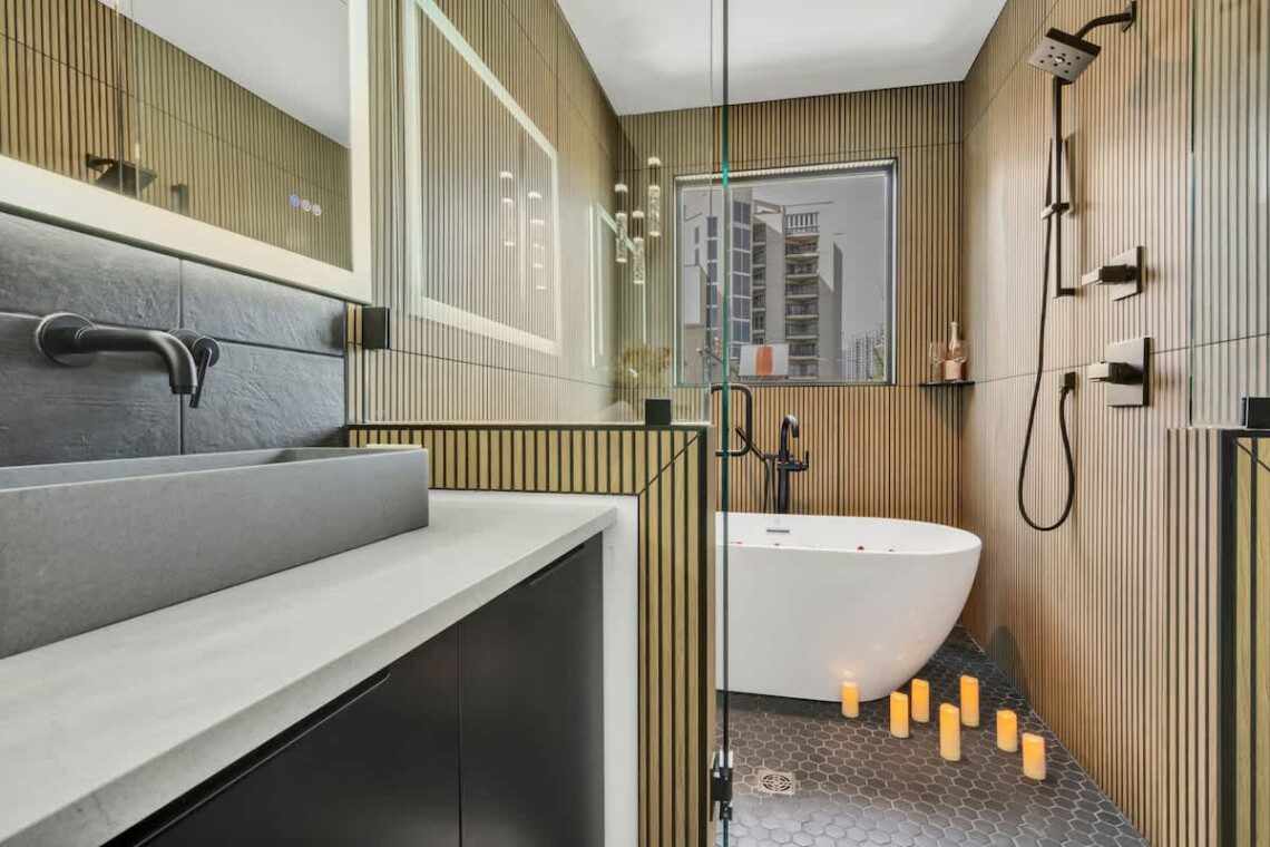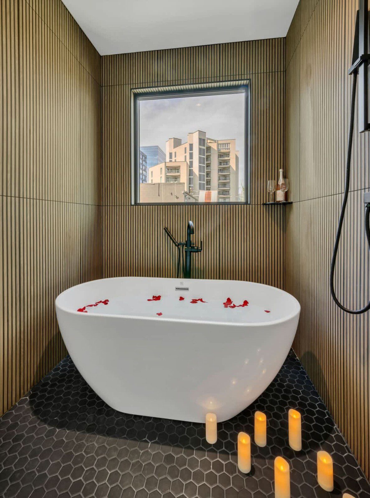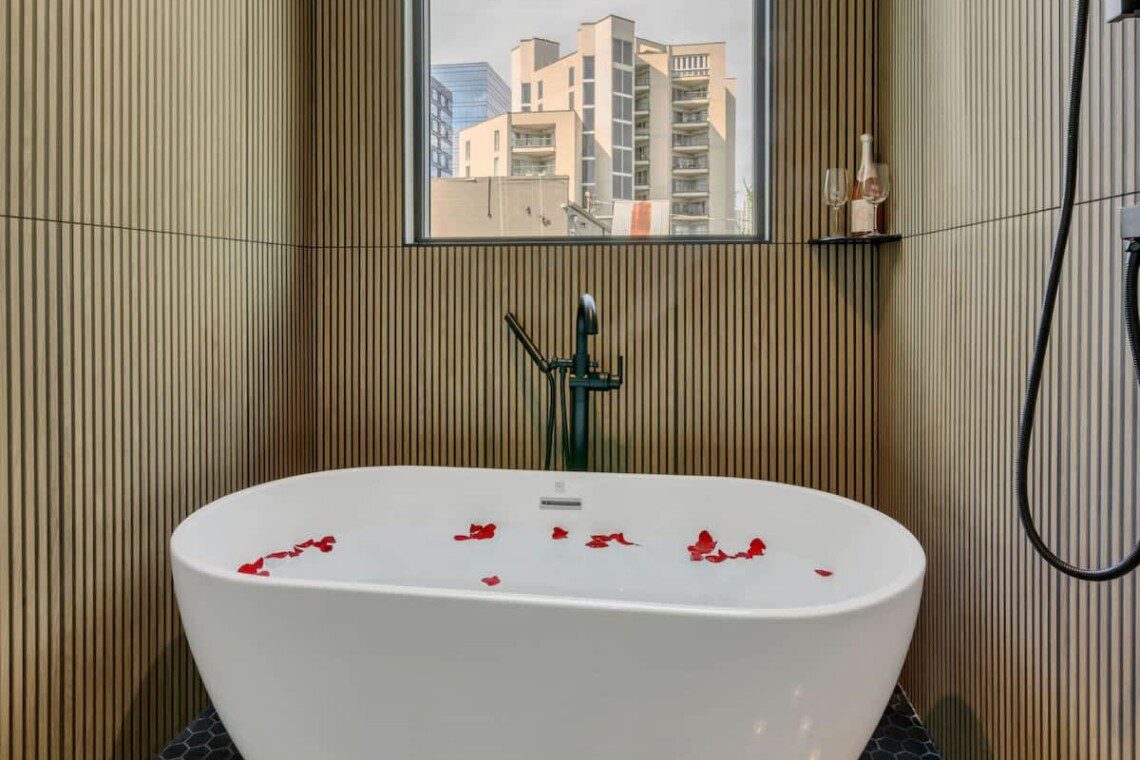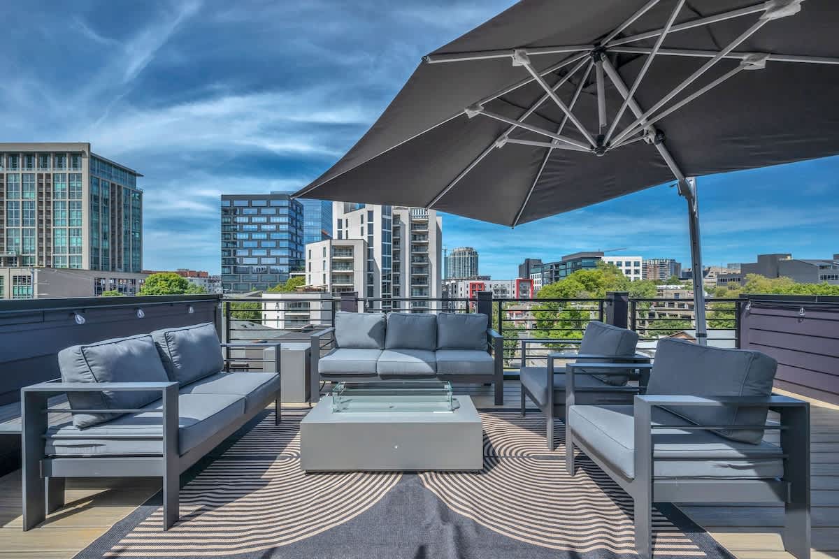 ◆ Rooftop deck with 360 degree midtown views, electric fireplace and a hot tub (fits 8 people)
