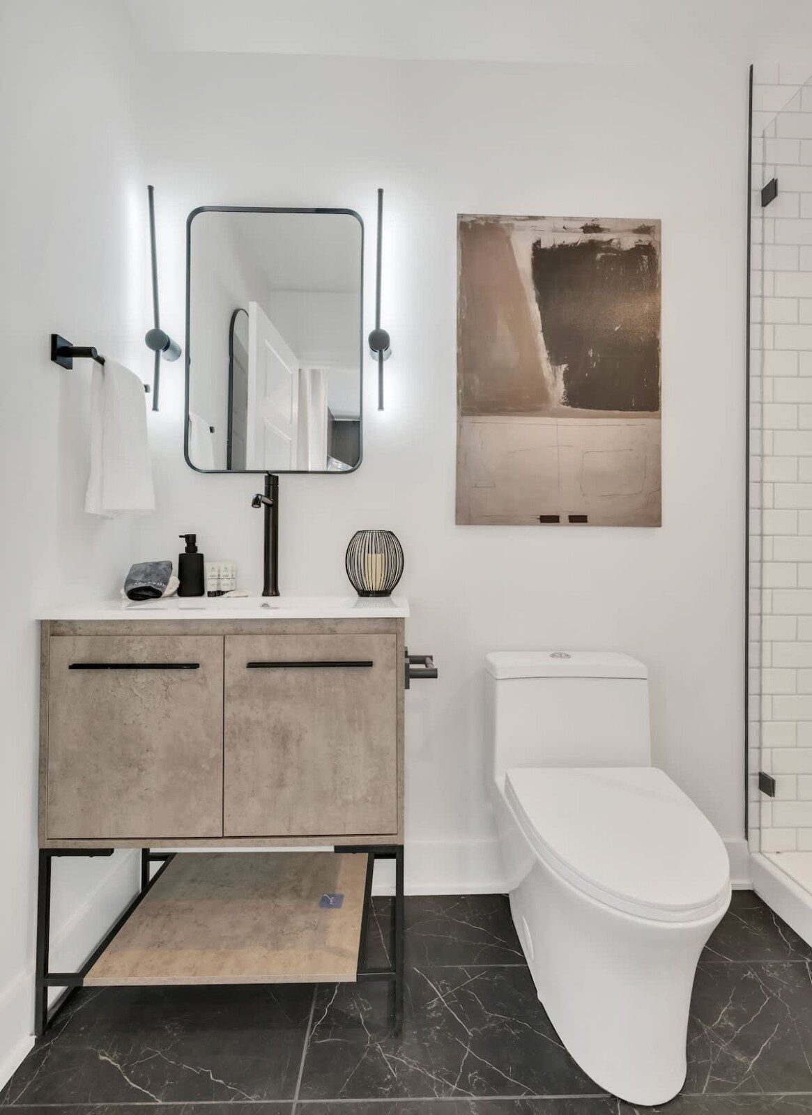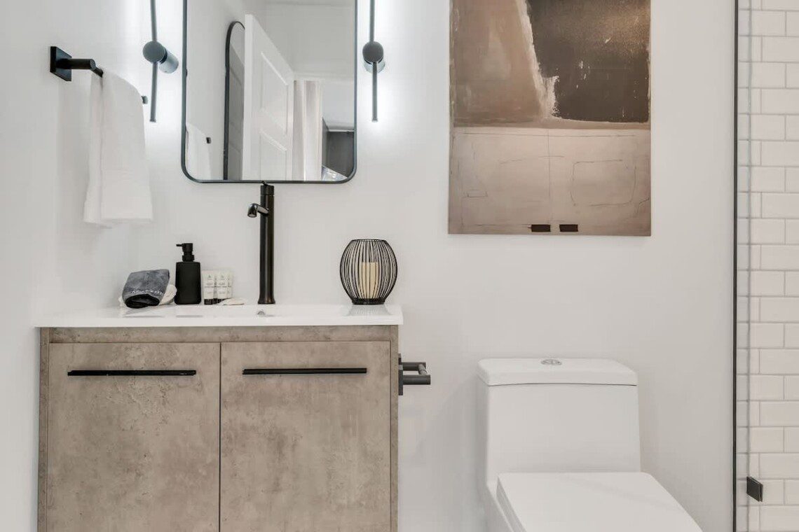 ◆ Bedroom 1 (Office) – Queen (Murphy) bed + Full bath + TV