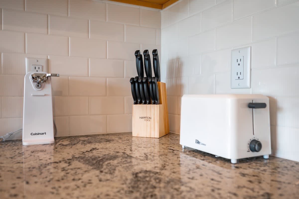 In the living room you will find a sleeper sofa along with a large flat screen tv. CitySide Lofts is just a few blocks away from downtown, known for their delicious restaurants. If you choose to stay in for a night, the kitchen is stocked with all the kitchen essentials (utensils, basic cookware, dishes, keurig). A few K-cups will be provided to get your vacation started on the right foot.