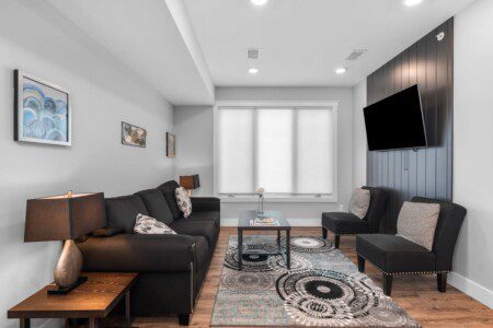 In the living room you will find a sleeper sofa along with a large flat screen tv. CitySide Lofts is just a few blocks away from downtown, known for their delicious restaurants. If you choose to stay in for a night, the kitchen is stocked with all the kitchen essentials (utensils, basic cookware, dishes, keurig). A few K-cups will be provided to get your vacation started on the right foot.