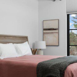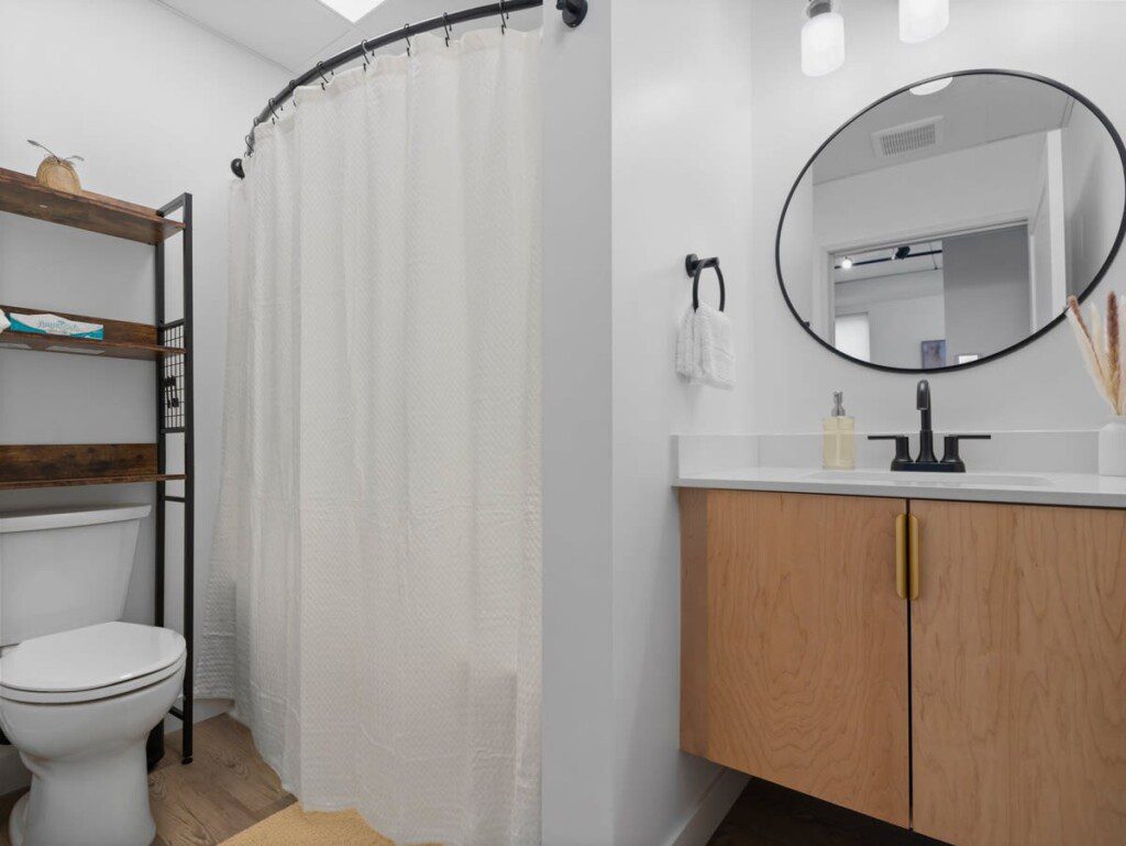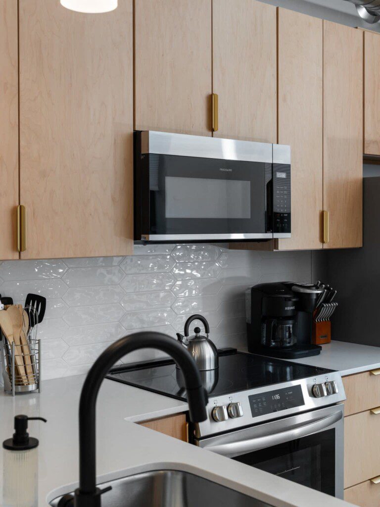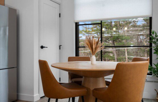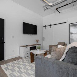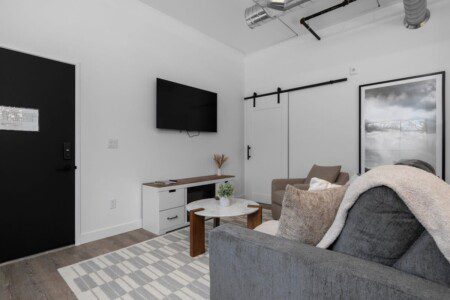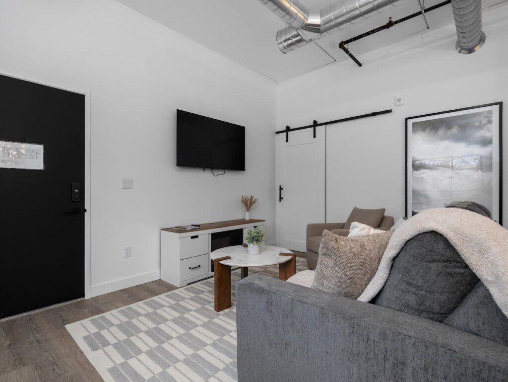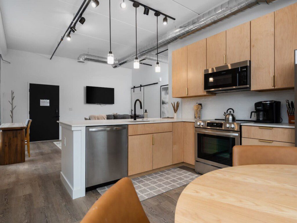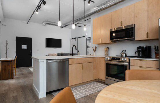 Step inside to an open concept brand new build condo that is sure to suit your needs during your stay. The kitchen is equipped with stainless steel appliances and a comfortable dinning table to enjoy your home cooked meals. Enjoy natural light throughout the entire space but feel free to close the blinds for more privacy. There is a 65 inch smart TV in the living room as well as a pullout sofa. The bedroom holds a comfortable king sized bed complete with a dresser to store your clothing and a smart TV for your use.