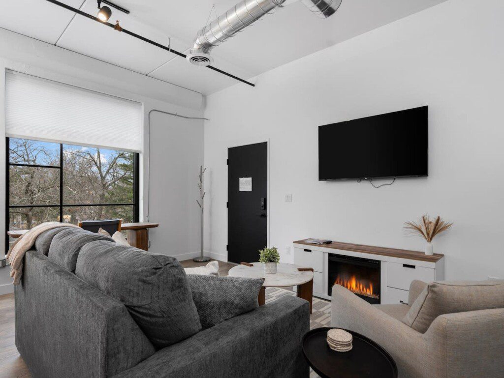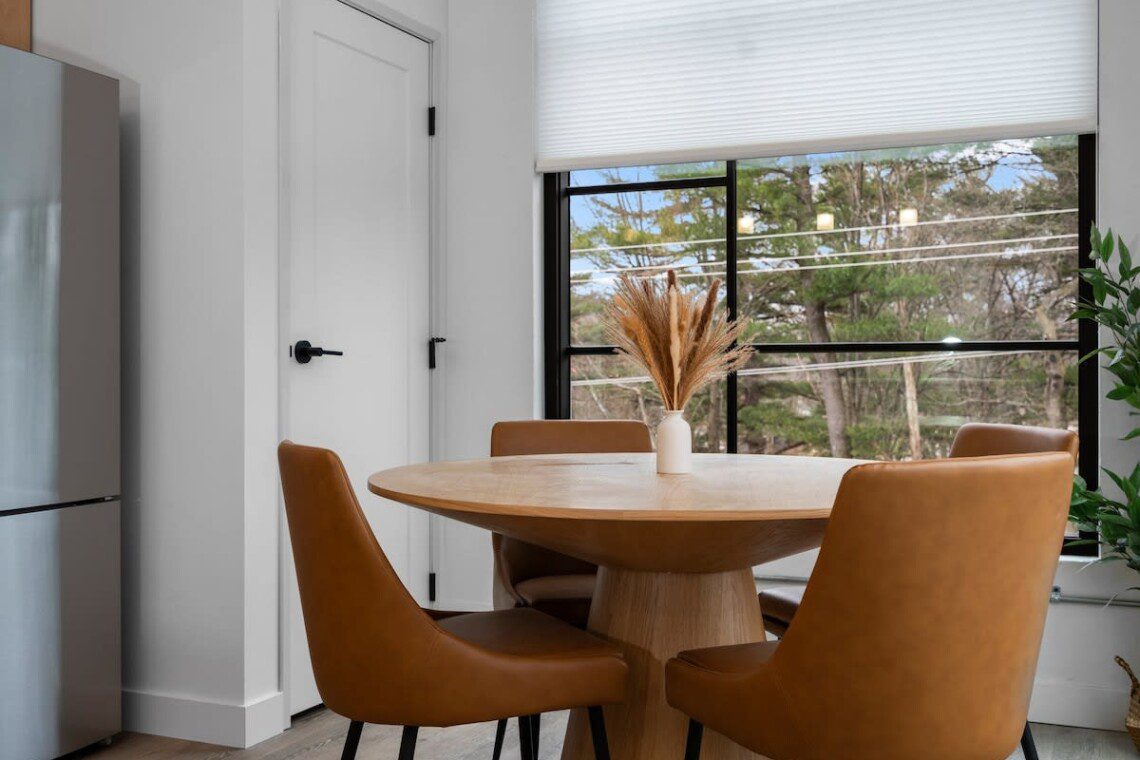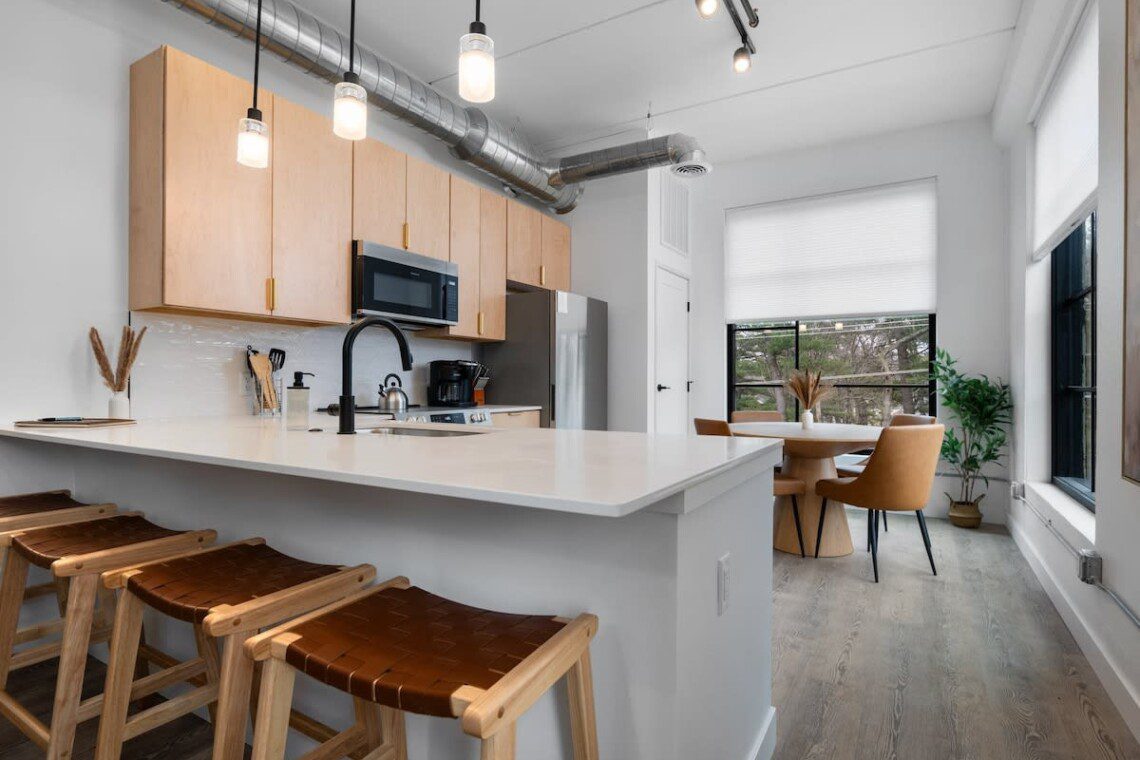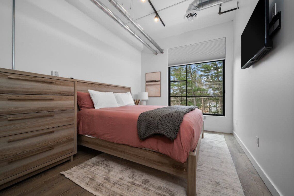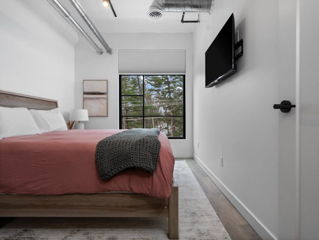 Discover modern living at its finest with an industrial twist in this sleek 1 bed, 1 bathroom Eastside condo. Enjoy views from the shared rooftop deck, complete with relaxing hot tubs for ALL guests to enjoy. This condo offers all the essentials for comfortable living and is just a short drive from downtown Traverse City and the renowned wineries on Old Mission Peninsula. Embrace the perfect blend of style and convenience in your next vacation spot.