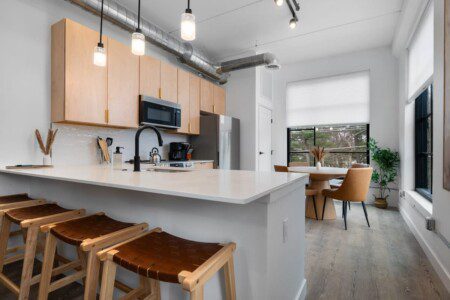 This modern condo is located on the fourth floor with a conveniently located elevator, or stairs if you prefer.