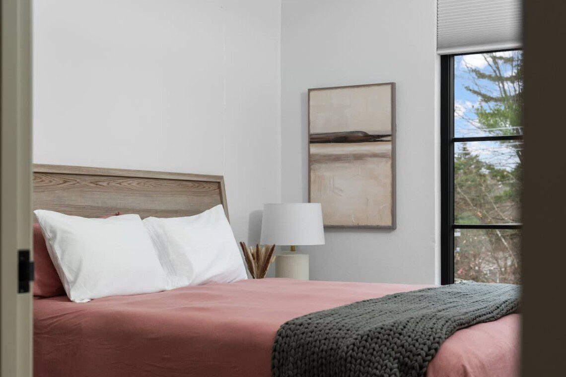 Step inside to an open concept brand new build condo that is sure to suit your needs during your stay. The kitchen is equipped with stainless steel appliances and a comfortable dinning table to enjoy your home cooked meals. Enjoy natural light throughout the entire space but feel free to close the blinds for more privacy. There is a smart TV in the living room as well as a pullout sofa. The bedroom holds a comfortable king sized bed complete with a dresser to store your clothing and a smart TV for your use.