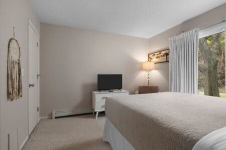 A beautifully maintained condo, conveniently located near The Grand Traverse Resort. This cozy 2-bedroom, 2-bathroom unit offers all the necessities for a delightful vacation in Traverse City. Complete with in-unit laundry and a fully equipped kitchen, it provides the perfect retreat for a few days. Plus, enjoy entertainment on three smart TVs, allowing you to stream your favorite shows and movies (please use your personal login and remember to log out before leaving).