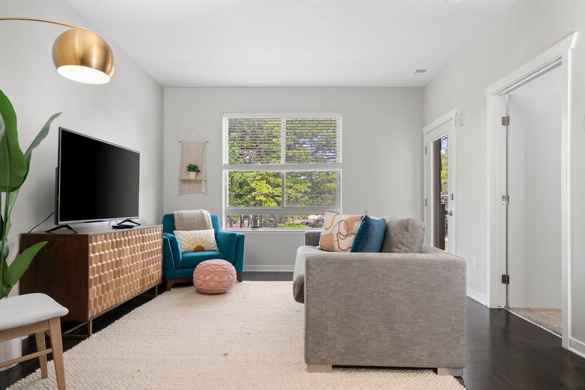 Adjacent to the kitchen is a cozy and tastefully decorated living room, complete with a plush pull-out couch, perfect for accommodating additional guests. The living room is equipped with a smart TV and cable box, ensuring that you can unwind and enjoy your favorite shows or movies during your stay.