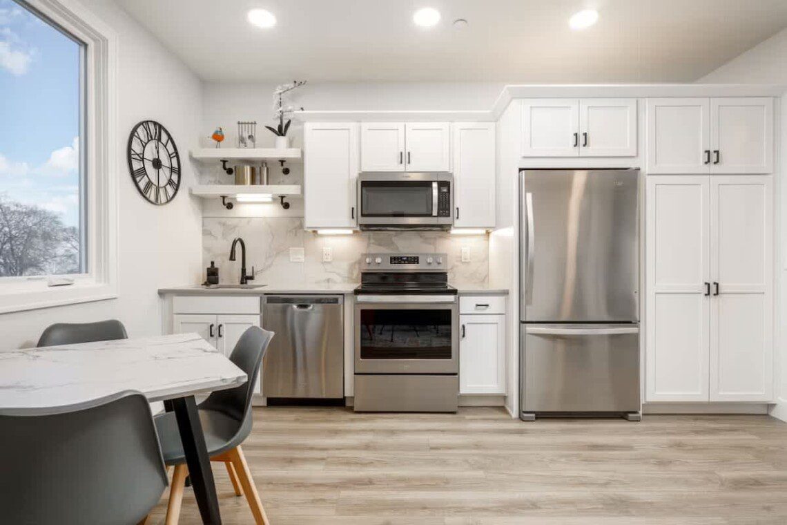 This modern third-floor walk-up condo offers everything you need for a comfortable stay. The open layout is fresh and clean, with a cozy fireplace for winter evenings and floor-to-ceiling windows featuring a stunning view of Lake Michigan’s West Bay.