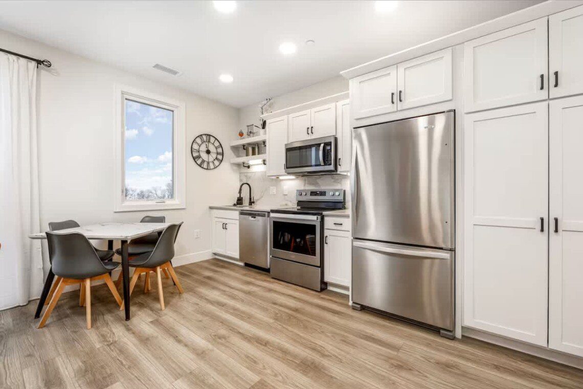 Located right next to the living room you will find the well stocked kitchen! If you are planning on staying in for a night and wanting to cook a homemade meal this kitchen has all your needed appliances, basic dish ware, cookware, and cooking utensils. This home hosts a drip coffee maker and 2 coffee bags will be provided to get your vacation started on the right foot! (Also included in the kitchen is 4 dish pods, dish soap, hand soap, a sponge, 3 trash bags, and 2 paper towel rolls)