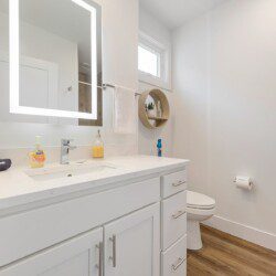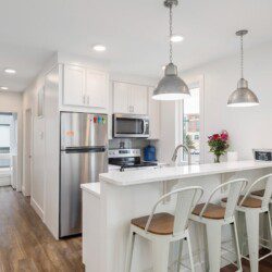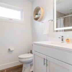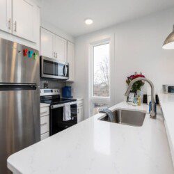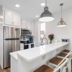The kitchen is stylish and has new, high-quality appliances. You can enjoy home-cooked meals at the kitchen’s four barstools, use the living room’s expanding coffee table as a dining spot, or enjoy a lovely dinner on the rooftop table.