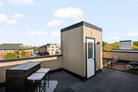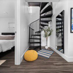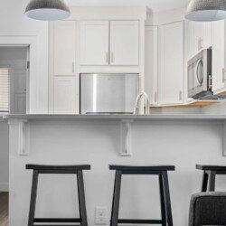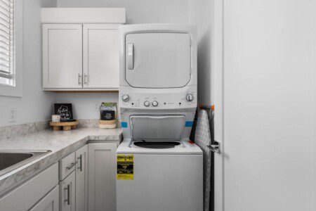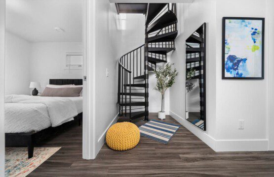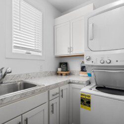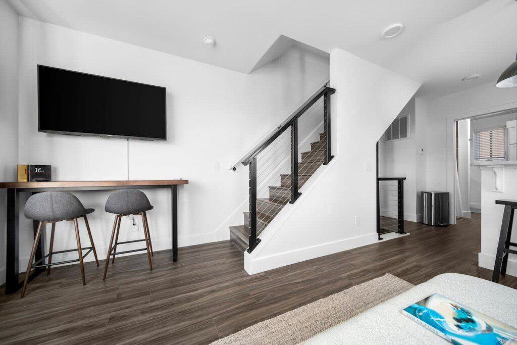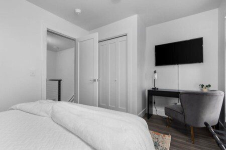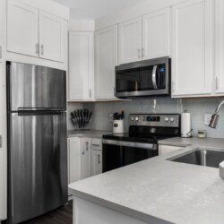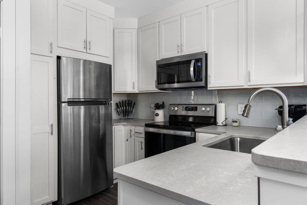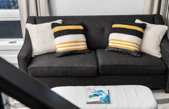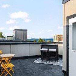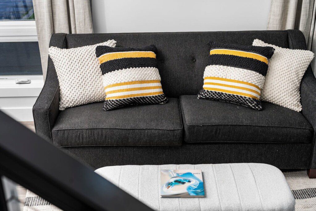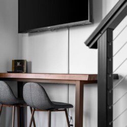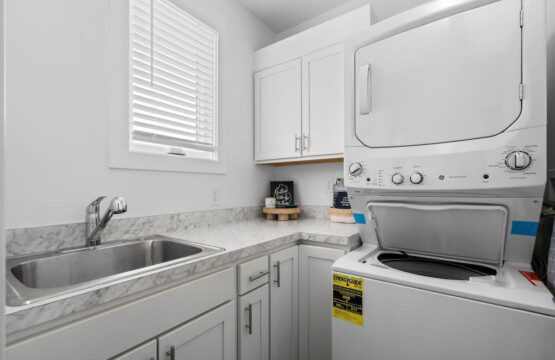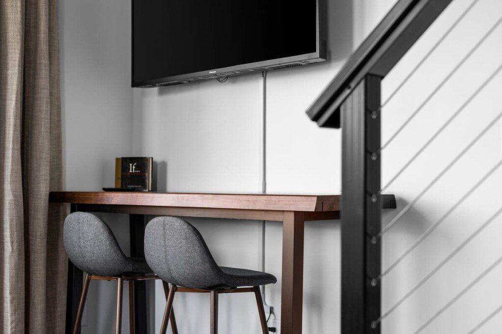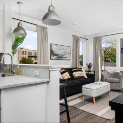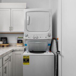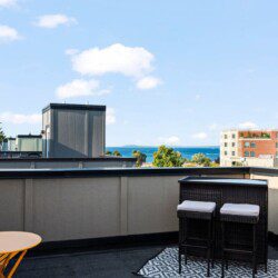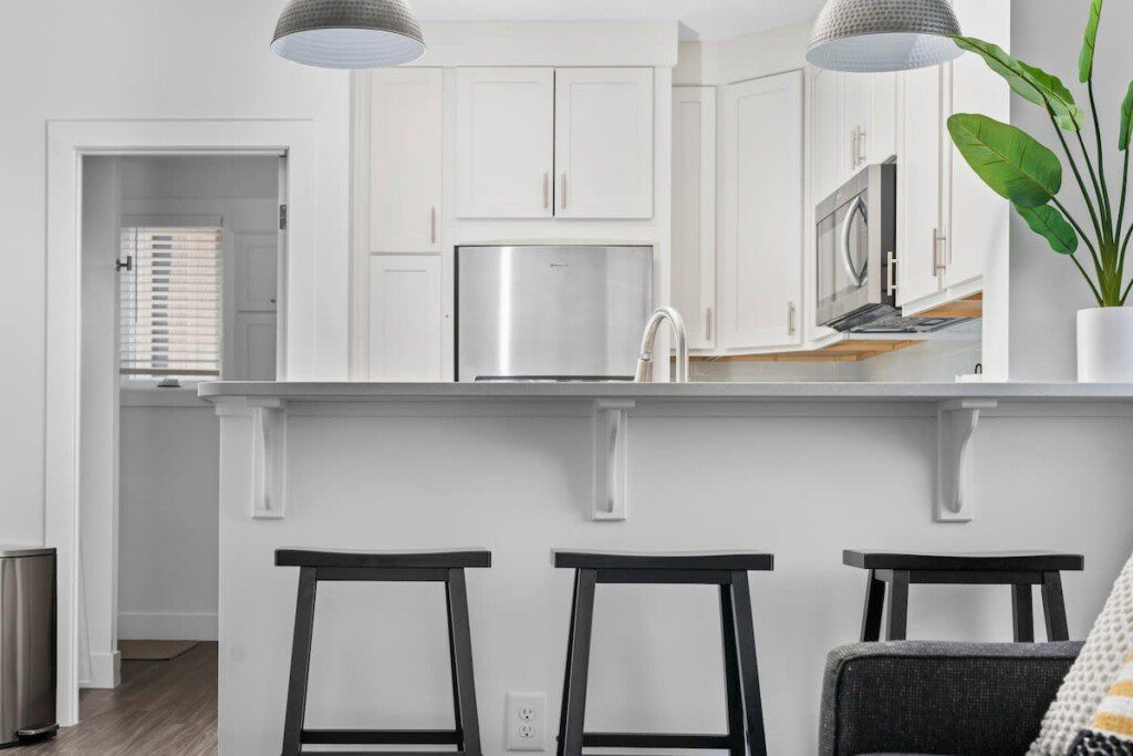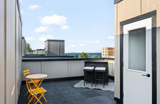 The condo’s chic and well-appointed kitchen showcases brand new, premium-grade appliances. Revel in the joy of home-cooked meals and dine either perched on one of our four barstools or savor a sunset-infused dinner on the secluded rooftop lounge.
