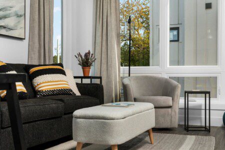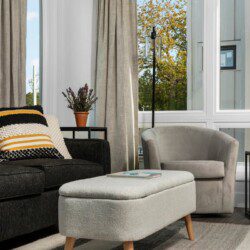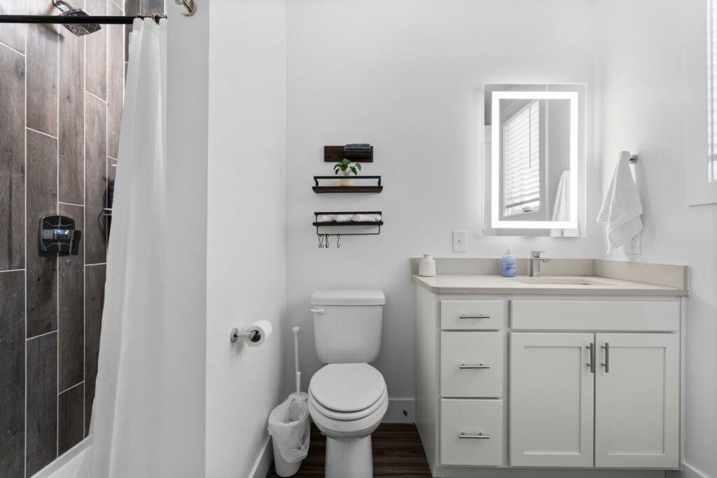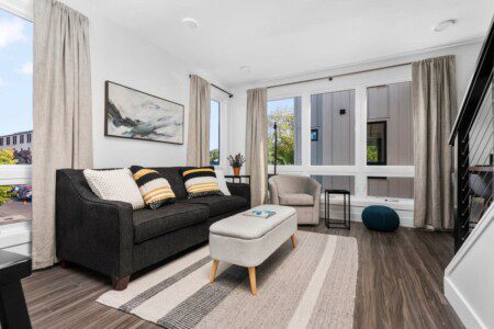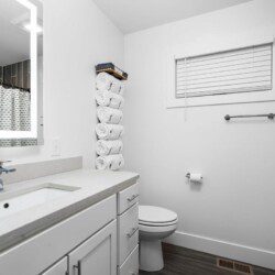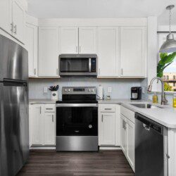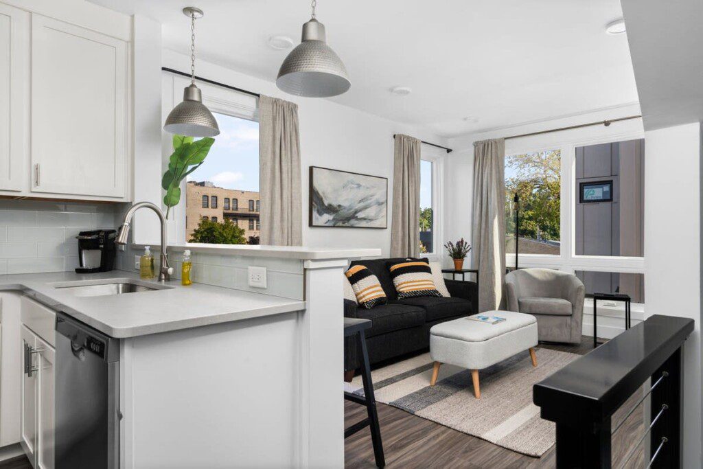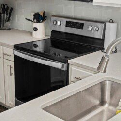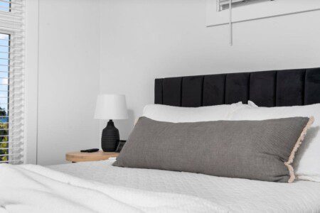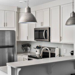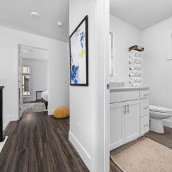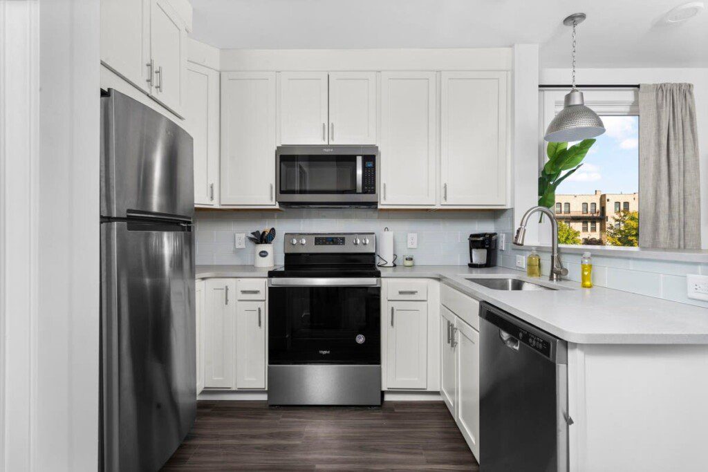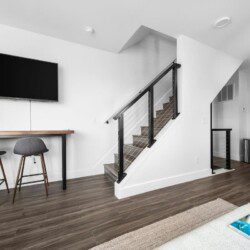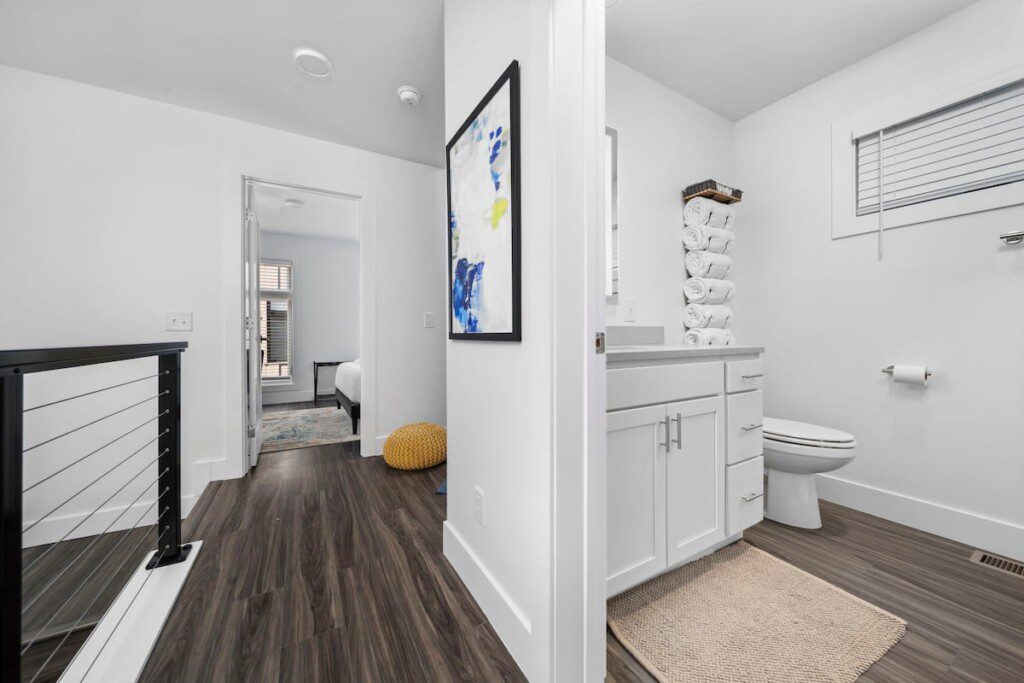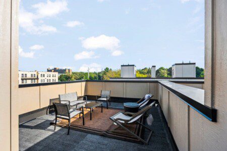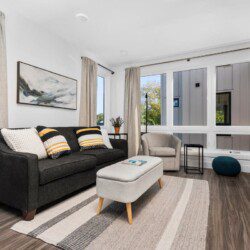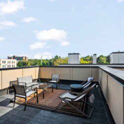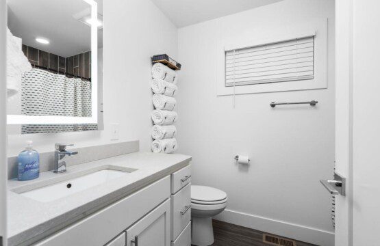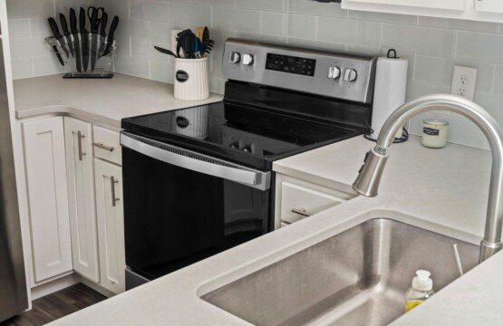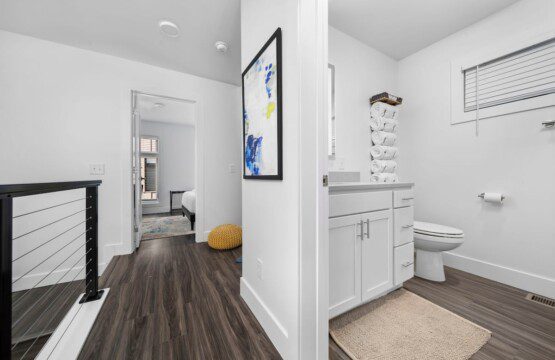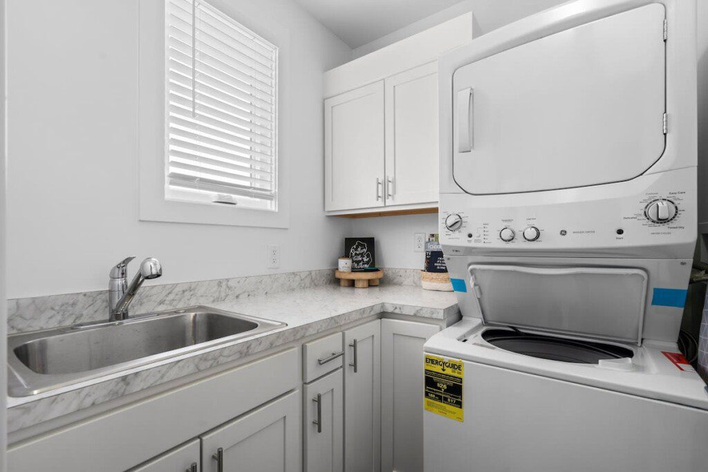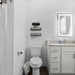 The condo’s chic and well-appointed kitchen showcases brand new, premium-grade appliances. Revel in the joy of home-cooked meals and dine either perched on one of our four barstools or savor a sunset-infused dinner on the secluded rooftop lounge.