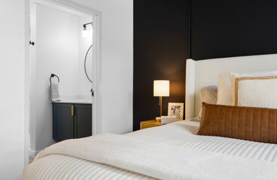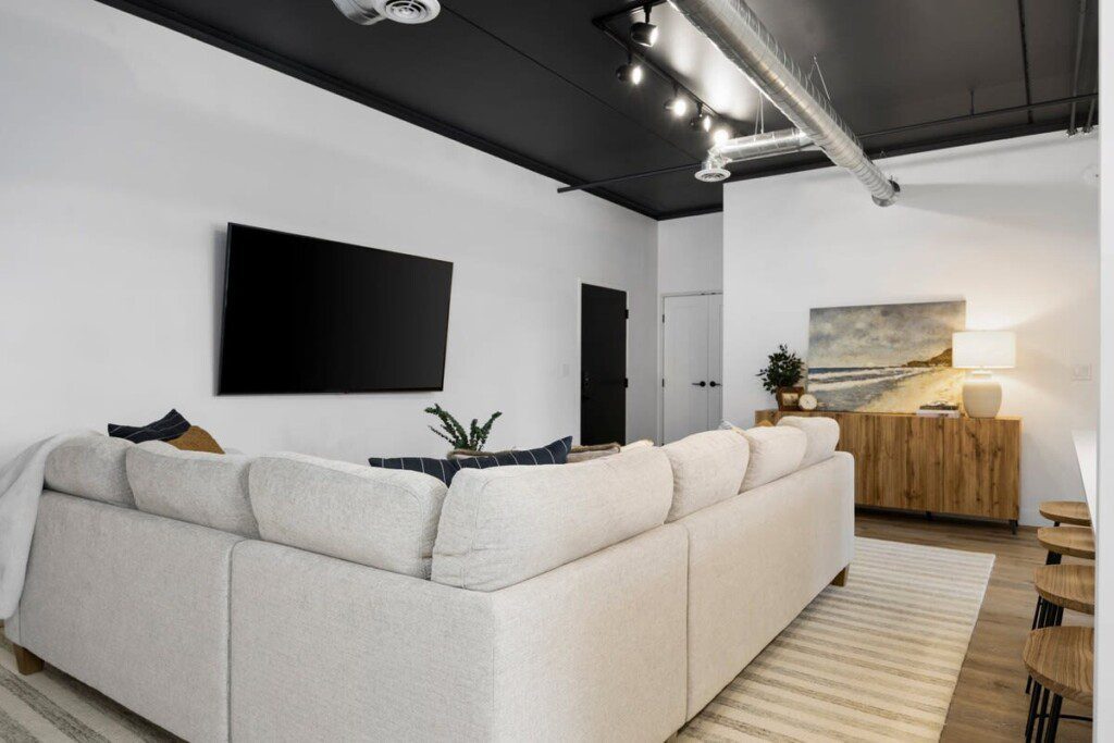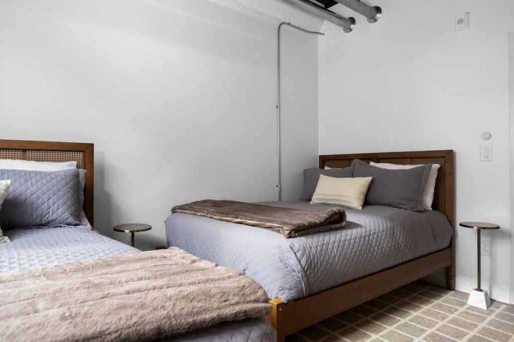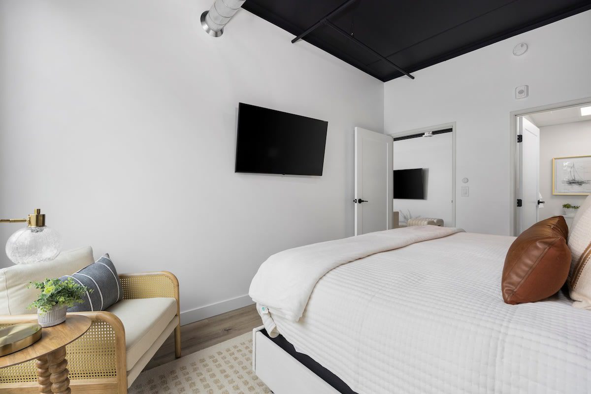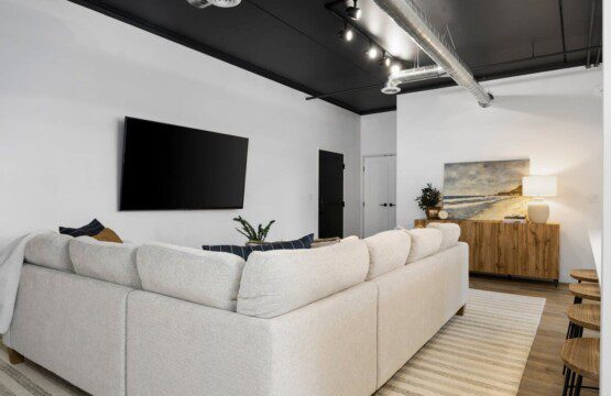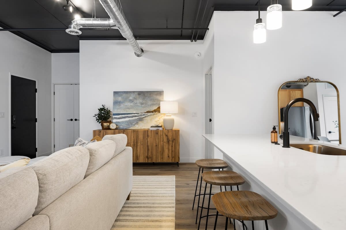 Step inside to this brand new build condo featuring an open concept that is sure to suit all your needs during your stay. The spacious living room features a smart TV and a comfortable sectional pullout couch. The kitchen is equipped with stainless steel appliances, all the basic kitchen necessities, and a dinning room table to enjoy your favorite home cooked meals. Enjoy natural light throughout the entire space but feel free to close the blinds in the bedrooms for more privacy. The primary bedroom hold a king sized bed, a smart TV, and an ensuite bathroom. The guest bedroom holds two full sized beds with the second bathroom conveniently located right next to it.