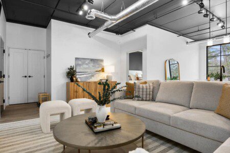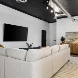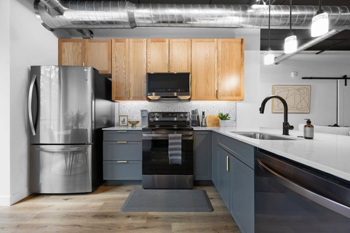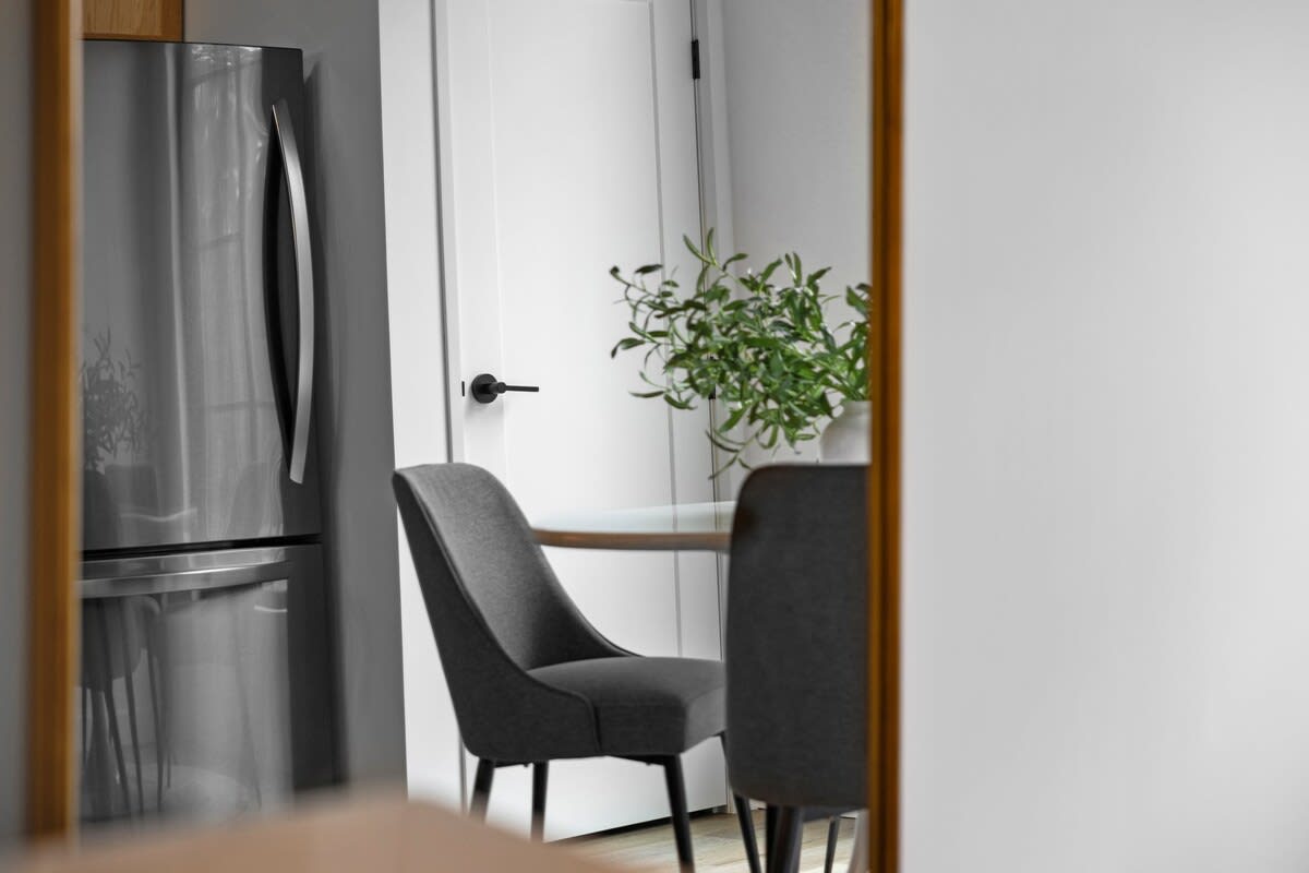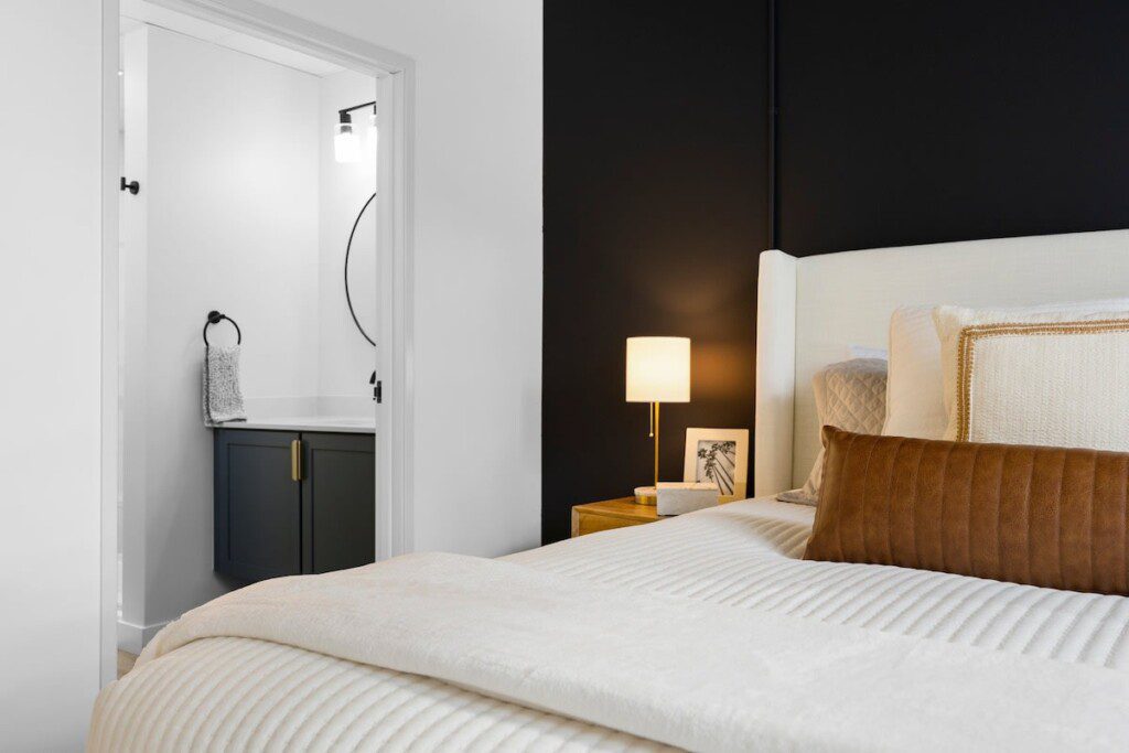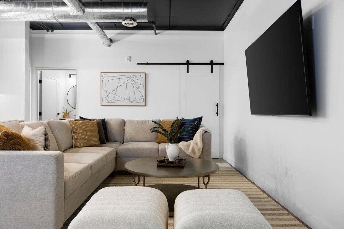 Step inside to this brand new build condo featuring an open concept that is sure to suit all your needs during your stay. The spacious living room features a smart TV and a comfortable sectional pullout couch. The kitchen is equipped with stainless steel appliances, all the basic kitchen necessities, and a dinning room table to enjoy your favorite home cooked meals. Enjoy natural light throughout the entire space but feel free to close the blinds in the bedrooms for more privacy. The primary bedroom hold a king sized bed, a smart TV, and an ensuite bathroom. The guest bedroom holds two full sized beds with the second bathroom conveniently located right next to it.