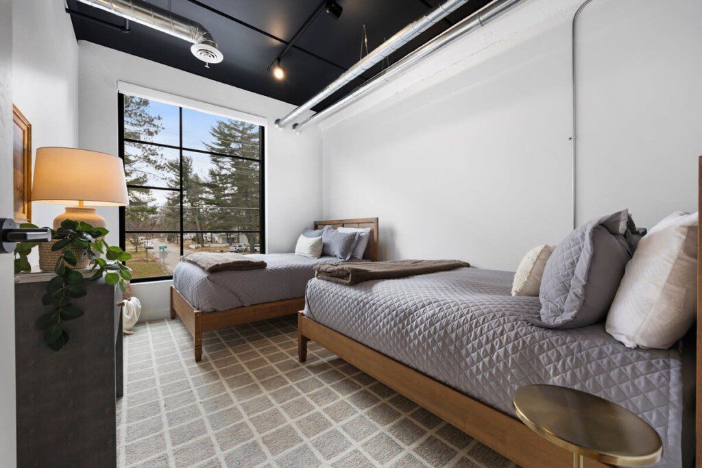 Discover modern living at its finest with an industrial twist in this sleek 2 bed, 2 bathroom Eastside condo. Enjoy views from the shared rooftop deck, complete with relaxing hot tubs for all guests to enjoy. This condo offers all the essentials for comfortable living and is just a short drive from downtown Traverse City and the renowned wineries on Old Mission Peninsula. Embrace the perfect blend of style and convenience in your vacation spot.