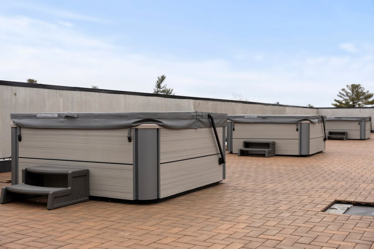 Located on the rooftop are four brand new hot tubs, up and ready to use. Be mindful that these hot tubs are for enjoyment by anyone staying in the entire building. We look forward to your stay!