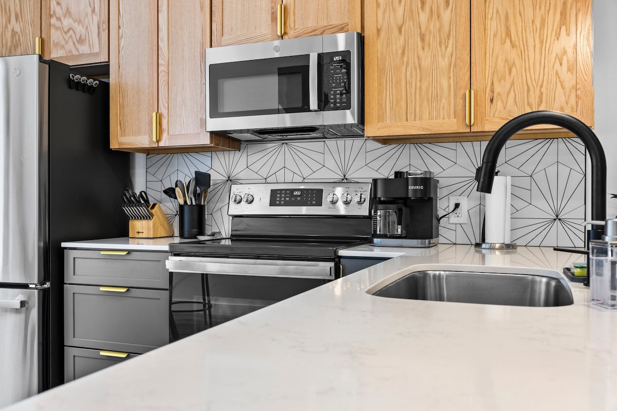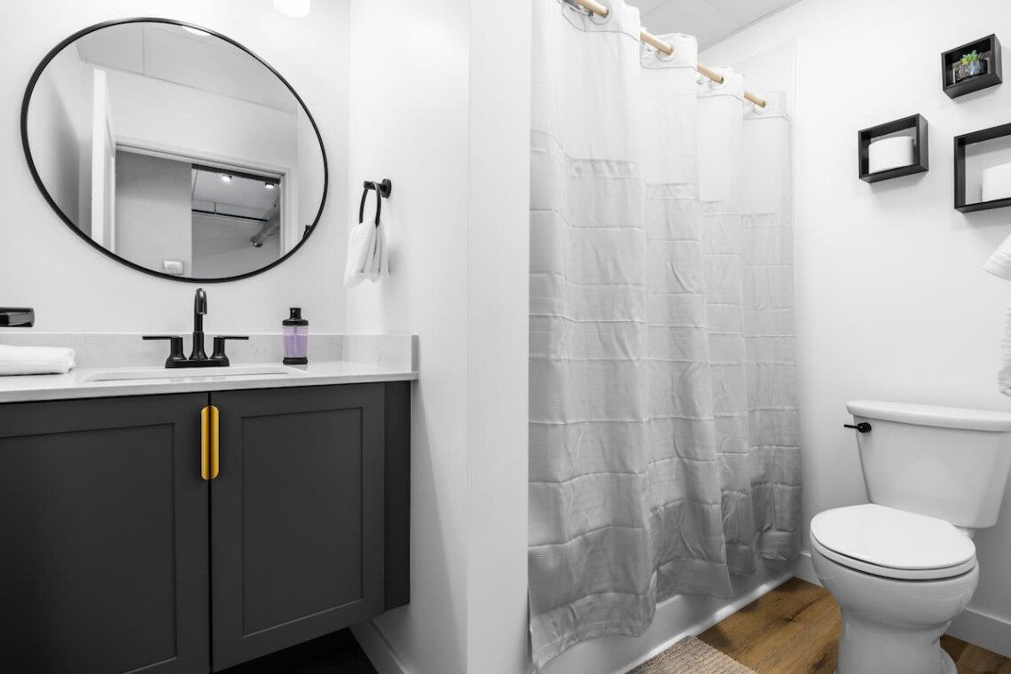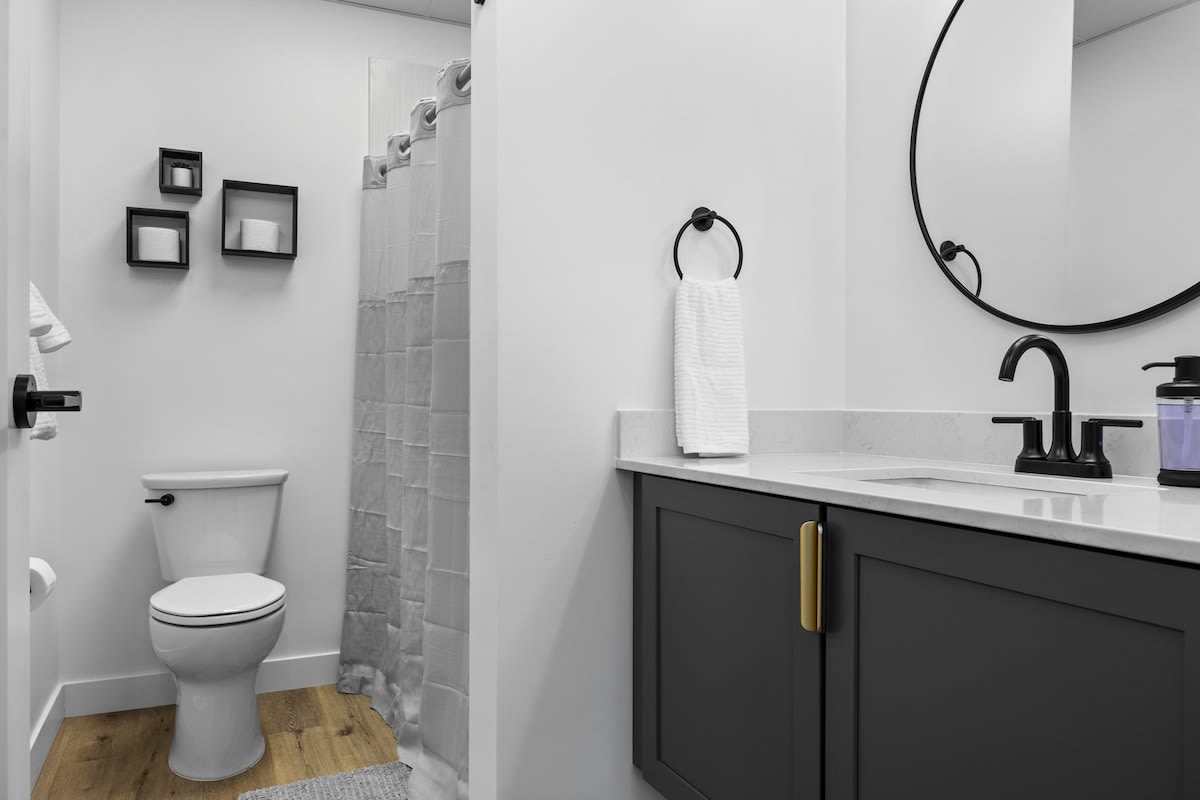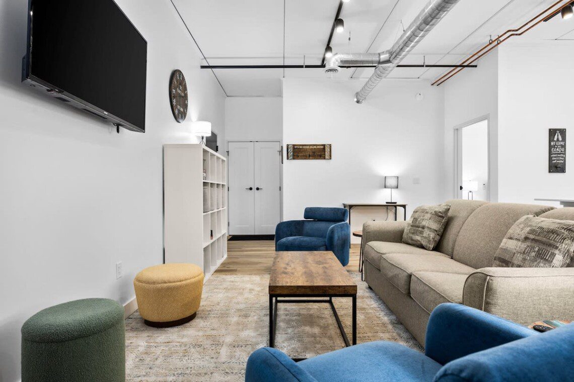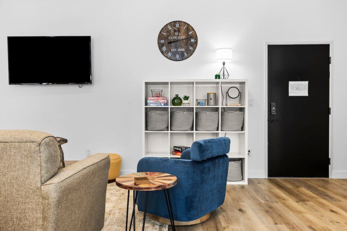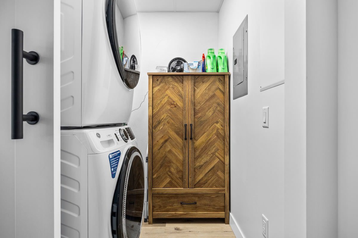 Step inside to this brand new build condo featuring an open concept that is sure to suit all your needs during your stay. The spacious living room features a smart TV and a pullout couch. The kitchen is equipped with stainless steel appliances, all the basic kitchen necessities, and a dinning room table to enjoy your favorite home cooked meals. Enjoy natural light throughout the entire space but feel free to close the blinds for more privacy. Both bedrooms hold a queen sized bed and a smart TVs for your convenience.
