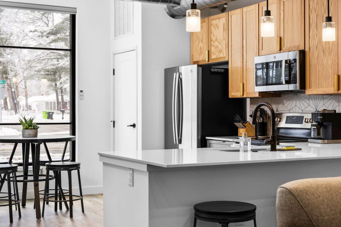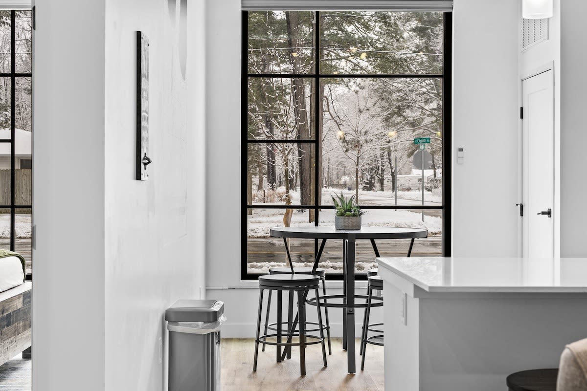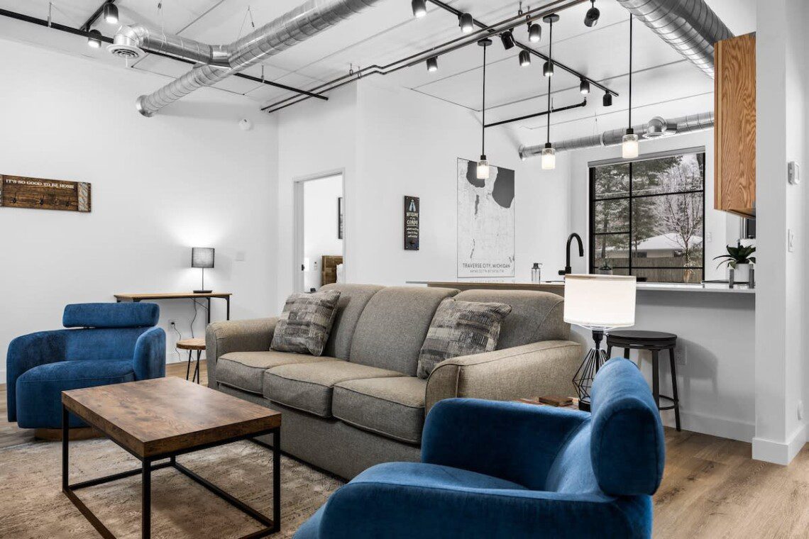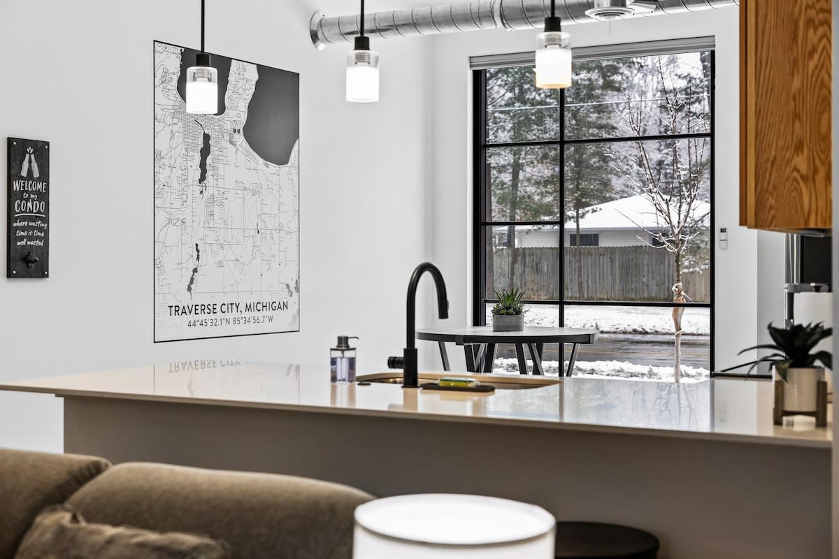 Discover modern living at its finest with an industrial twist in this sleek 2 bedroom, 2 bathroom Eastside condo. Enjoy the shared rooftop deck, complete with relaxing hot tubs for all guests to enjoy. This condo offers all the essentials for comfortable living and is just a short drive from downtown Traverse City and the renowned wineries on Old Mission Peninsula.