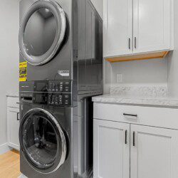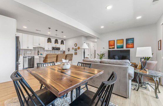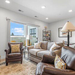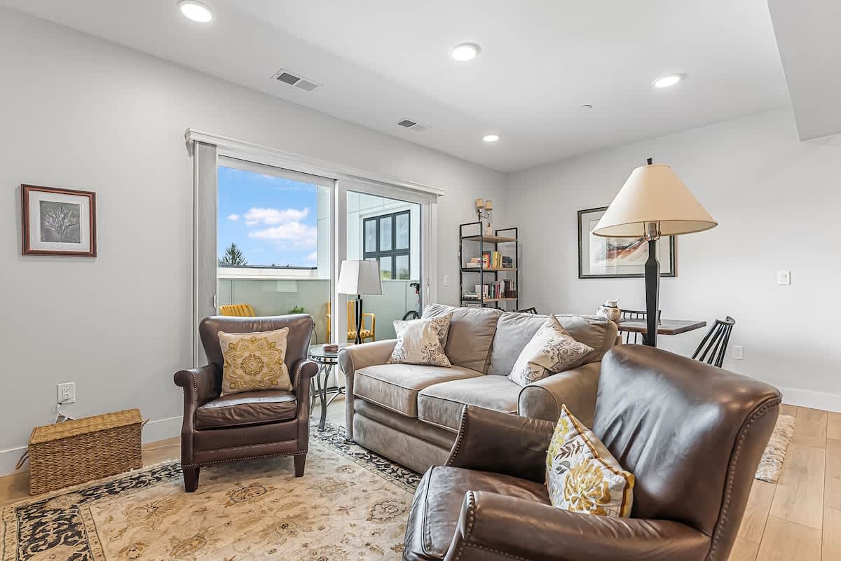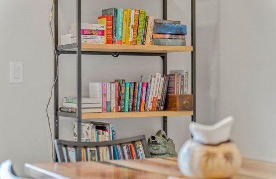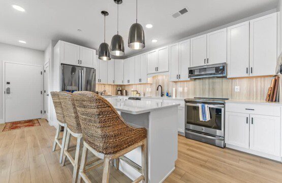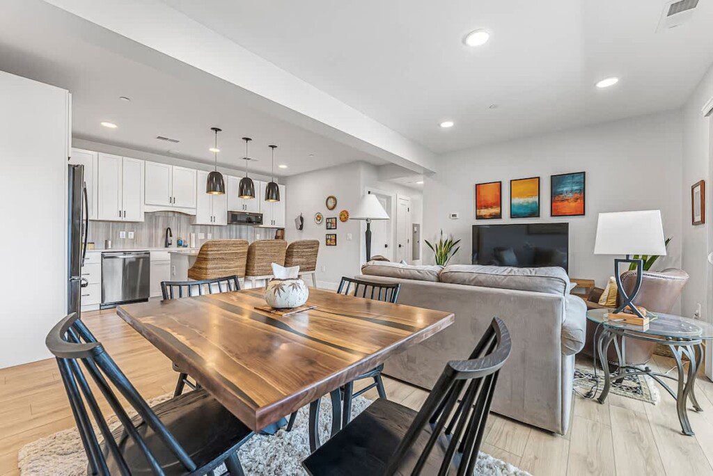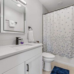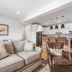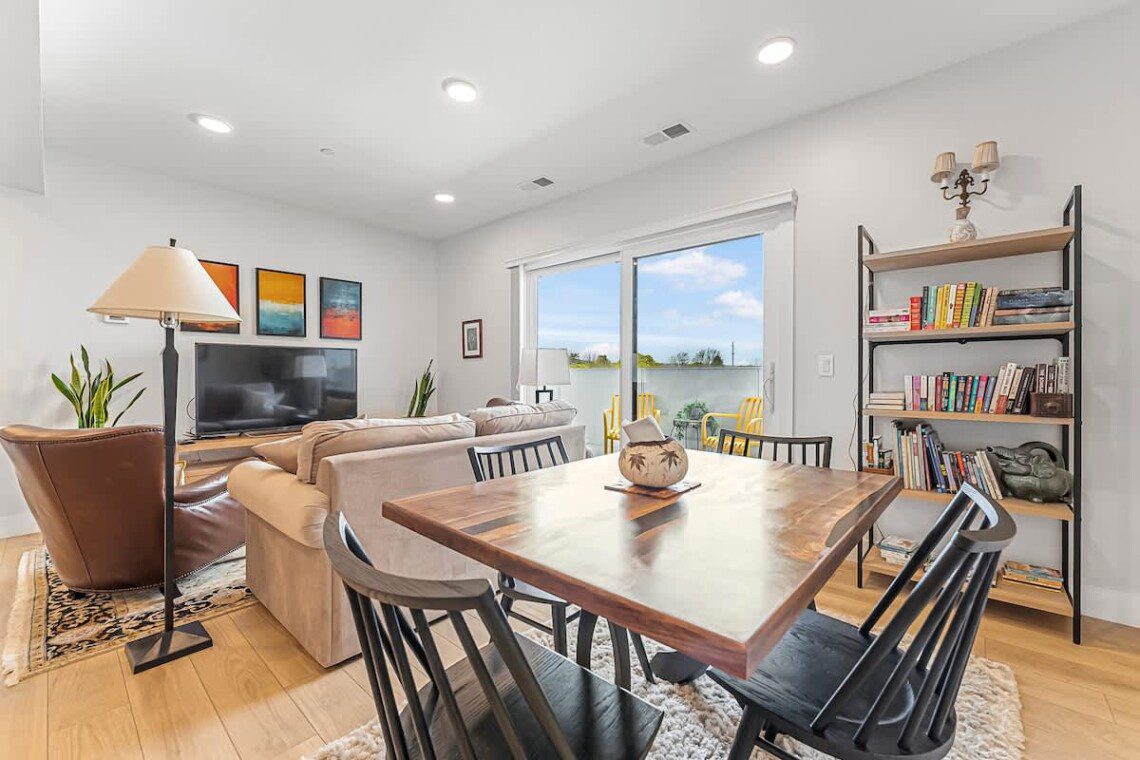 Enjoy the convenience of in-unit laundry, modern bathrooms with sleek black fixtures, and a curated collection of books and games to unwind with.