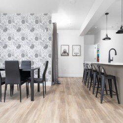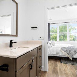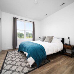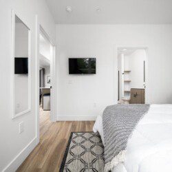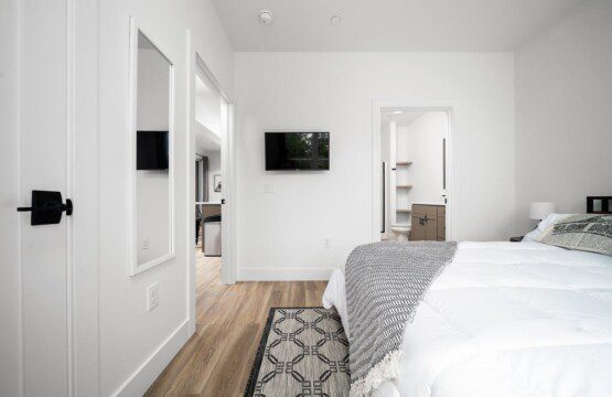 The stylish main bedroom hosts a comfortable king size bed with a flat-screen TV, walk-in closet and has an ensuite bathroom! The charming guest bedroom holds a king size bed, closet, and a flat-screen.