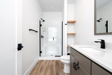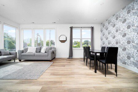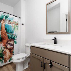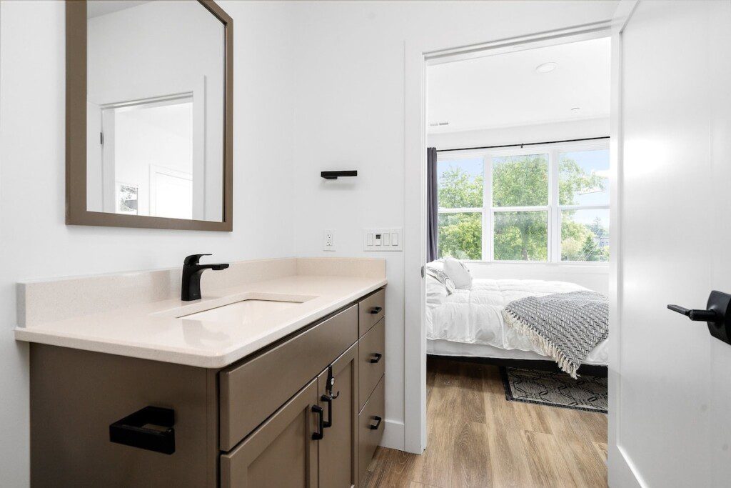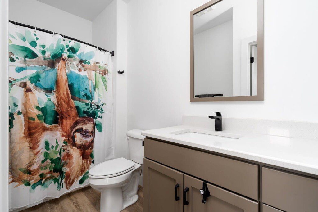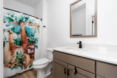 Other perks of this suite include a convenient washer and dryer, full bathtub and shower in the guest bathroom.