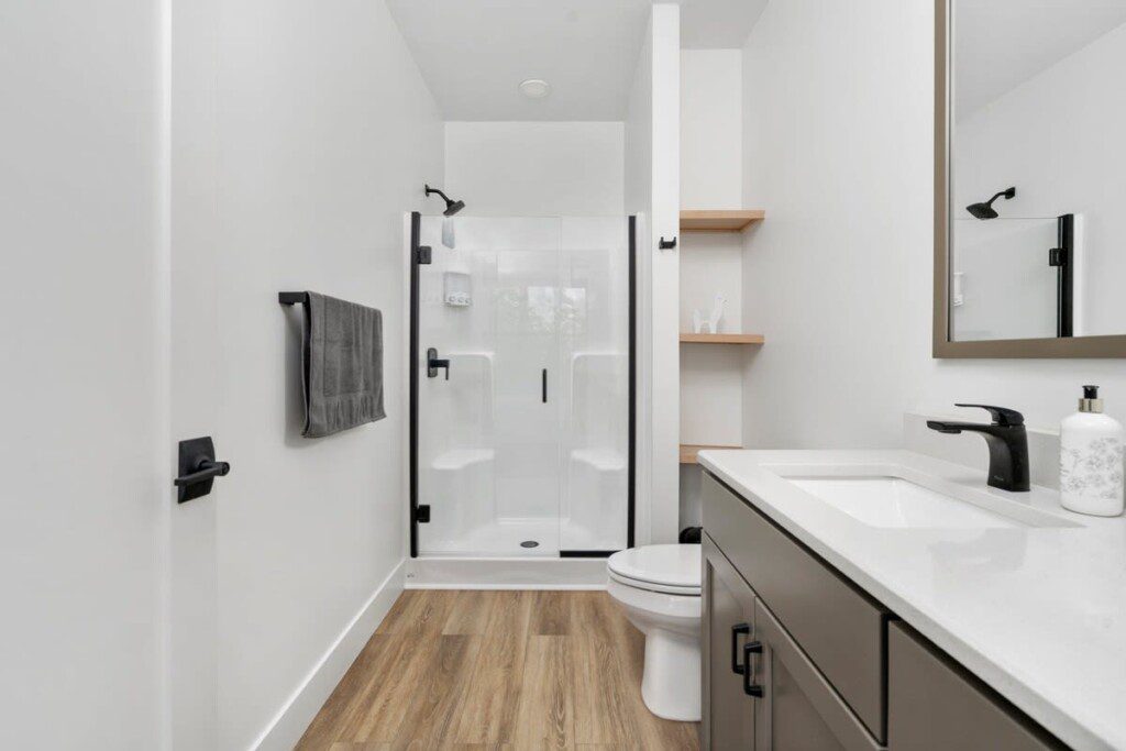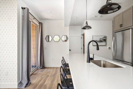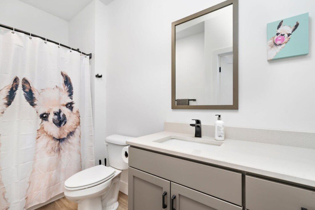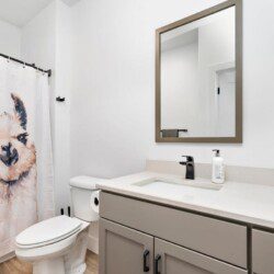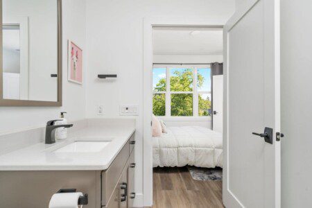 Other perks of this suite include a convenient washer and dryer, full bathtub and shower in the guest bathroom.
