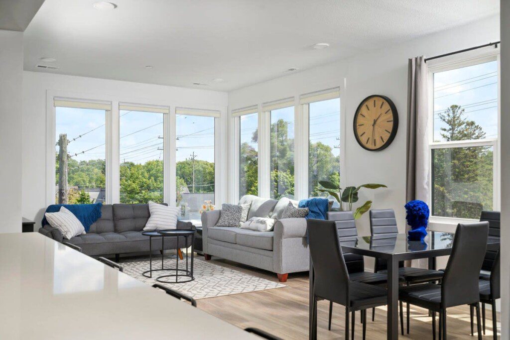 The modern and open floor plan boasts 1,141 square feet of living space. The fun and funky interior design makes this the perfect spot to host your family or friends in Traverse City, MI. Cook a wholesome meal in the fully-equipped kitchen or relax on the plush couch in the living room while watching television. Not ready to call it a night? Open the slider and step out onto the balcony and chill.