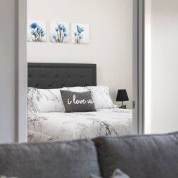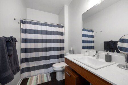 The master bedroom features a queen bed with a memory foam mattresses, smart night stands, a flat screen TV, large walk in closet with all of the essentials including bedding and towels, and a full en-suite private bathroom. The second bedroom includes a queen bed with memory foam mattress, smart night stands, large walk in closet, and a en-suite bathroom. Our unit also Includes a full size washer and dryer. We provide a number of additional amenities such as board games and yoga equipment.