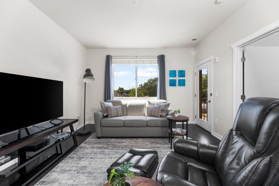 The living room is furnished with a pull-out couch, allowing additional sleeping arrangements for extra guests. Relax and unwind in this cozy space while enjoying the company of your loved ones. A smart TV is provided for your entertainment, ensuring you can catch up on your favorite shows or movies.