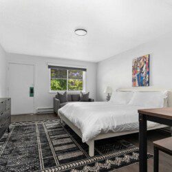 In addition to its fantastic location and well-appointed amenities, this studio apartment also offers complimentary Wi-Fi, ensuring you stay connected throughout your stay. It also features a Smart TV where you can access live TV through the Hulu app or log into any of your own personal accounts. Parking is available on-site, adding to your convenience, but only has space for one car per unit.