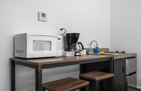 In addition to its fantastic location and well-appointed amenities, this studio apartment also offers complimentary Wi-Fi, ensuring you stay connected throughout your stay. It also features a Smart TV where you can access live TV through the Hulu app or log into any of your own personal accounts. Parking is available on-site, adding to your convenience, but only has space for one car per unit.