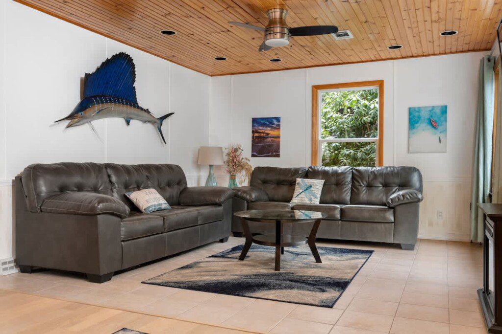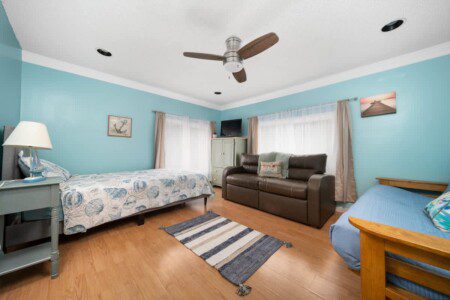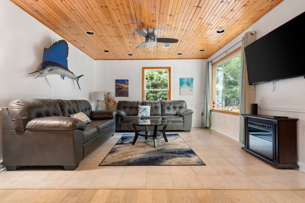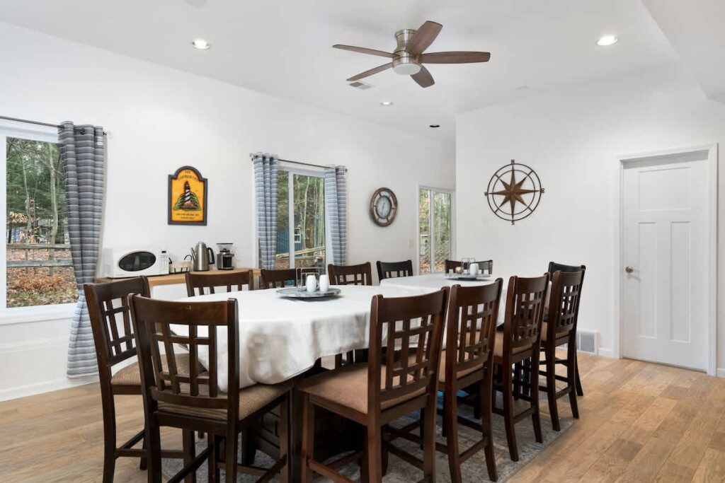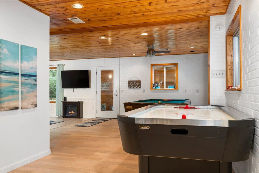 Along with the 7 bedrooms and 6 bathrooms, the house also offers two spacious living rooms and fun games like pool and air hockey, giving everyone plenty of room to unwind and enjoy some friendly competition.