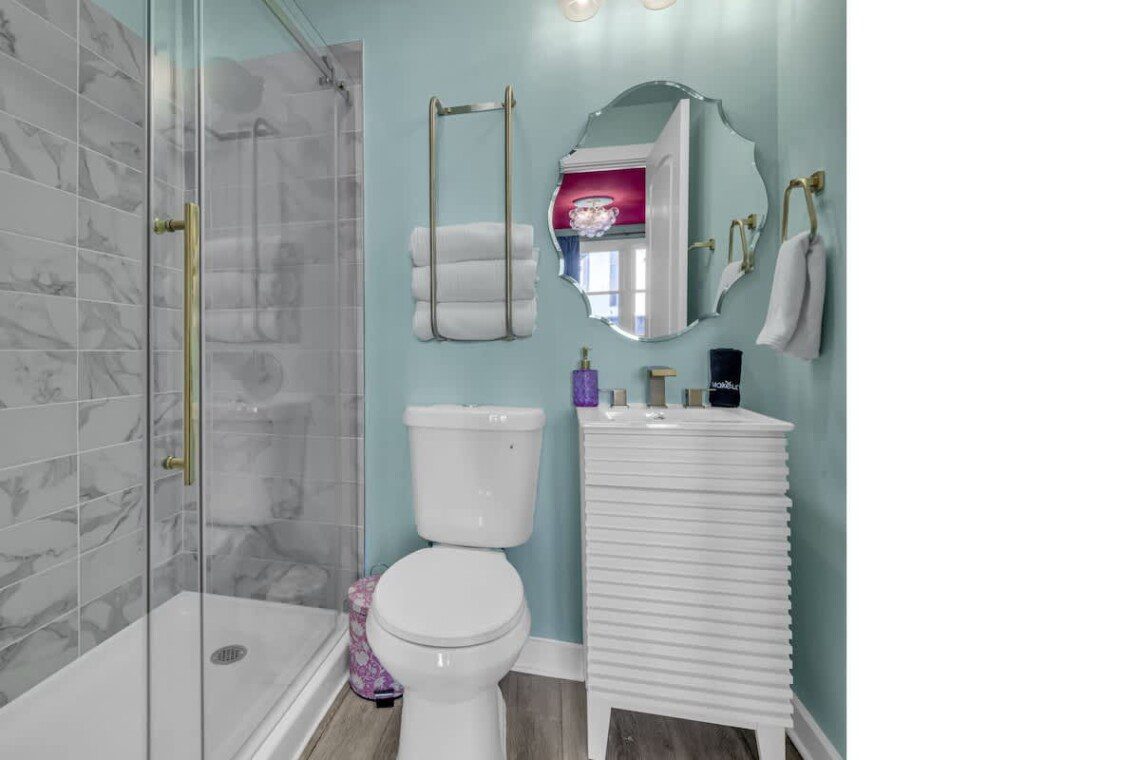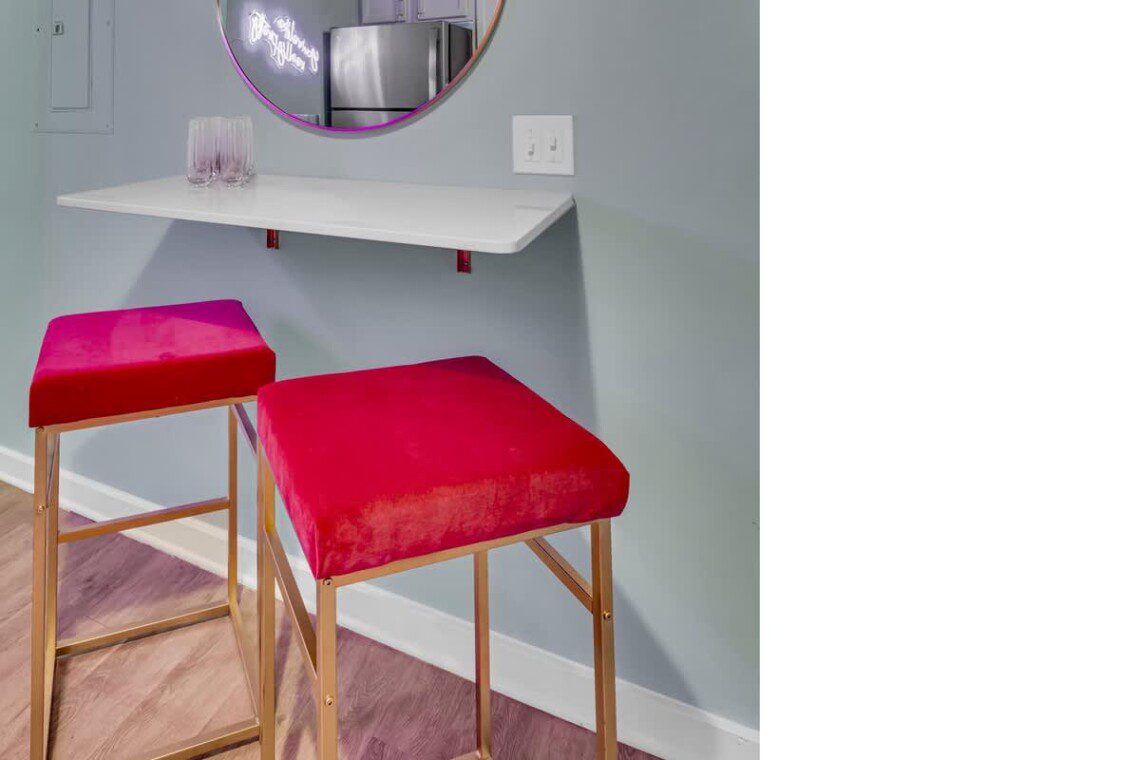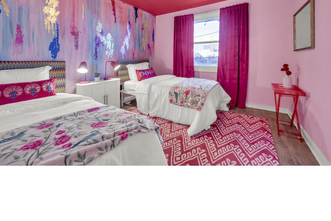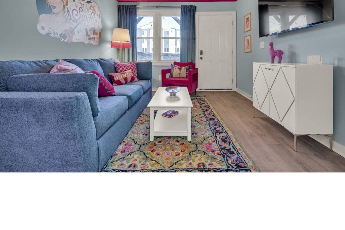 Welcome to our Taylor Swift – themed apartment. This two bedroom and one bathroom apartment, provides a comfortable space to call home after exploring a day in the music city. The living room provides ample space to relax and stream your favorite shows on our mounted flat screen Smart TV. The sofa bed also pulls out into a queen sized bed, allowing for 6 guests to stay in this apartment.