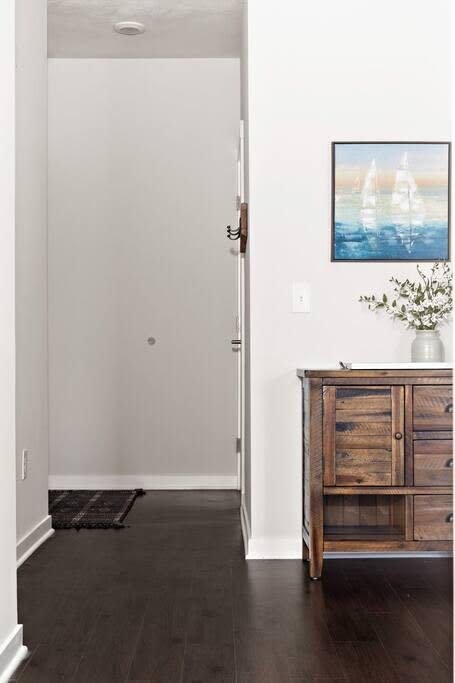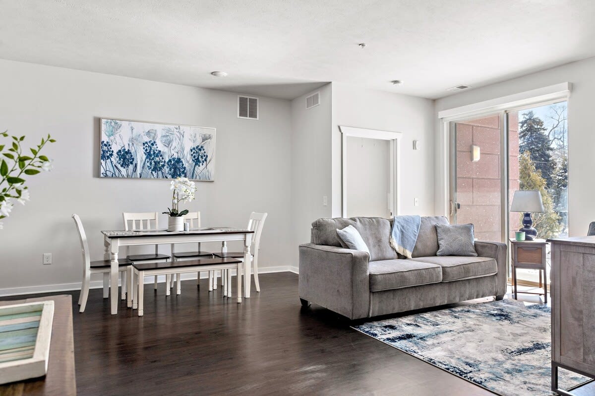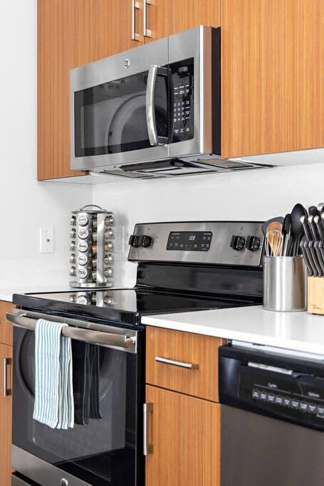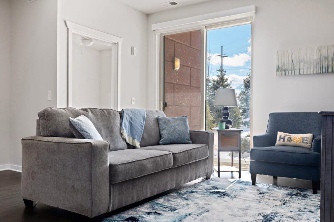 In the living room you will find a pullout sofa, additional seating, and a large flat screen tv. Trailside45 is a mile and a half away from downtown, known for their delicious restaurants. If you choose to stay in for a night, the kitchen is stocked with all of the kitchen essentials (utensils, basic cookware, dishes, keurig). A few K-cups will be provided to get your vacation started on the right foot.