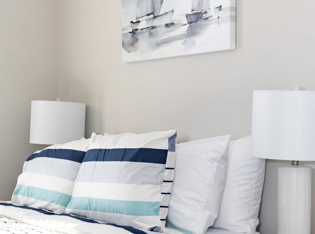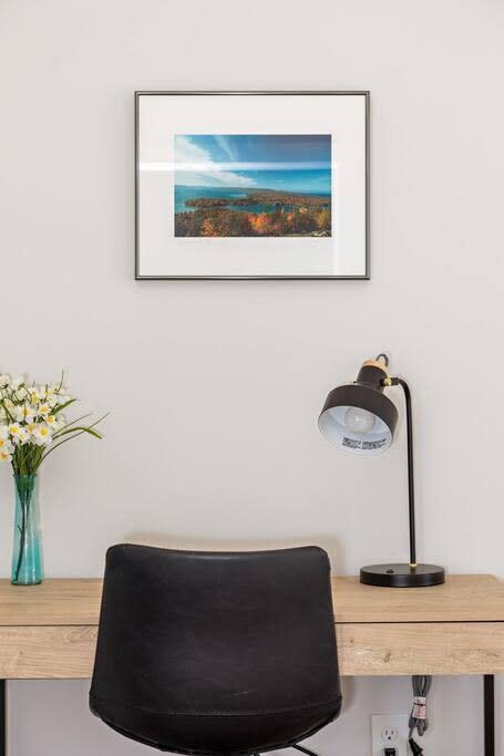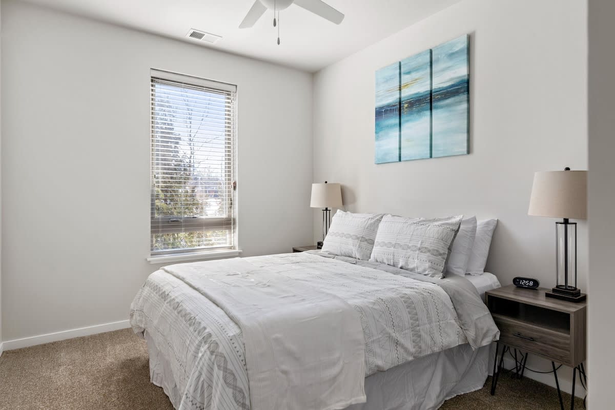 This first floor unit has everything that you need to enjoy a comfortable stay in Traverse City. Walk into our master bedroom that has a queen size bed and a walk-in closet to fit all of your belongings (or new purchases). The master bedroom also an ensuite bathroom, stocked with toiletry essentials.