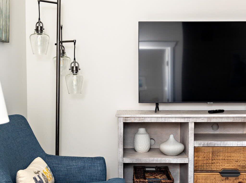 **There is a Smart TV in the living room for you to use your personal login for streaming services, but no cable**